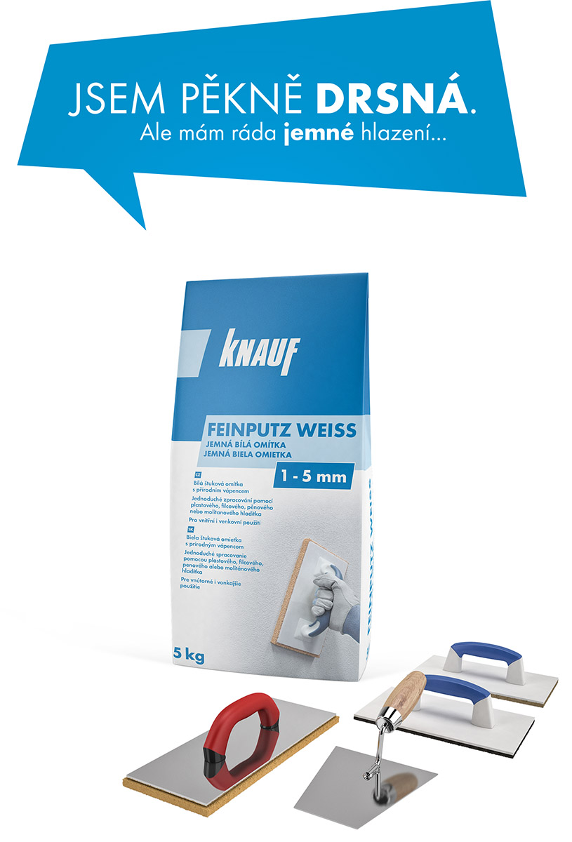 Omítka se prodává pod obchodním názvem KNAUF FEINPUTZ WEISS a je určena pro vnitřní i vnější použití. Zpracovává se jednoduše pomocí běžných hladítek a vytváří pěknou rovnoměrnou strukturu štukového povrchu. Hodí se na sjednocení vzhledu povrchu místností se sádrokartonem a omítkou, k renovaci starých štukových omítek po seškrabání malby, na opravy ostění a špalet po výměně oken i na opravy jádrových omítek. Snadno se s ní provádějí struktury a ornamenty na stěnách a lze ji využít při opravě poškozených, vydrolených a popraskaných starých omítek. Alternativně je možné tuto omítku použít také pro opravy starých štukových fasád, nebo všude tam, kde si uživatelé netroufají použít klasické štuky nebo šlechtěné omítky. Umožňuje také vyrovnat drobné nerovnosti podkladu do maximální tloušťky 5 mm. Je možné ji aplikovat, za použití příslušné penetrace, na vyhlazené nebo filcované omítky, sádrokartonové plochy, beton a rovněž i na tradiční vápenocementové omítky.
