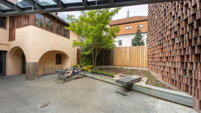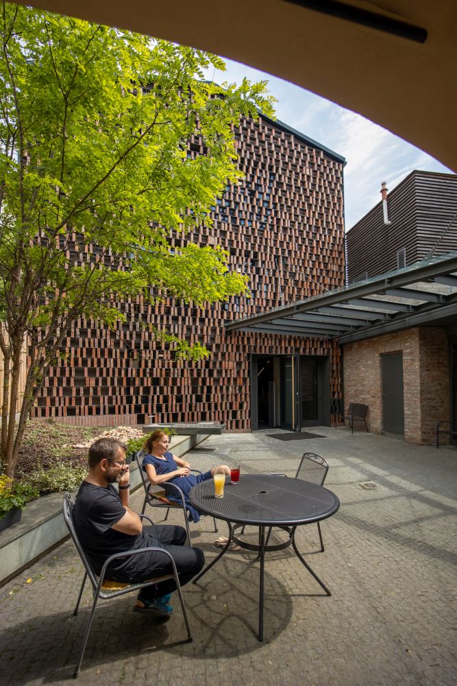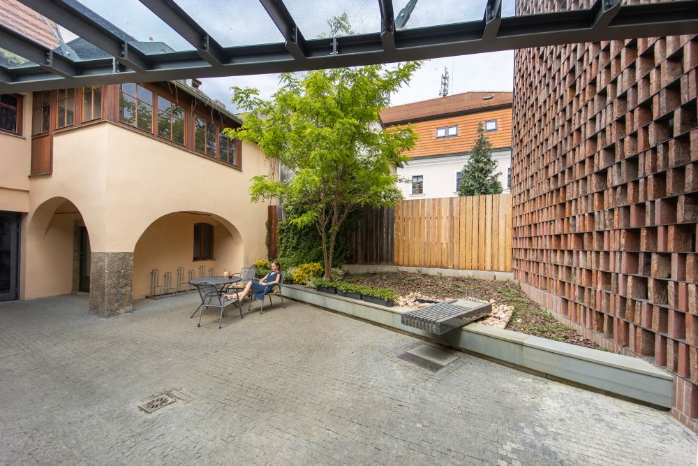 spoluvytváří malé nádvoří. Stojí na místě bývalé pekárny, později výrobní
