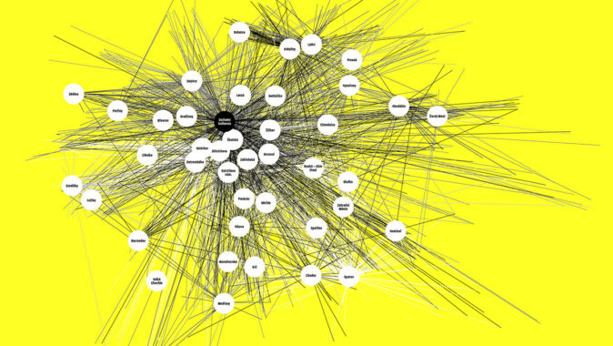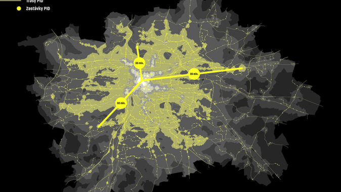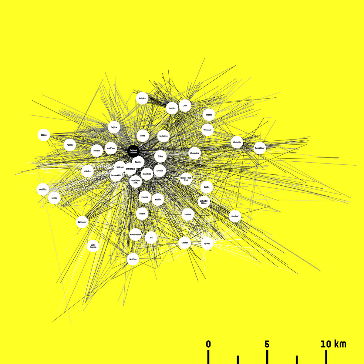 v Praze jsou na mapě znázorněny bílými body. Z nich vedou čáry, jež je