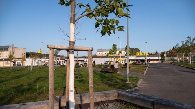 nevyužívané plochy v centrální části Komořan v Praze, kterou vymezují ulice
