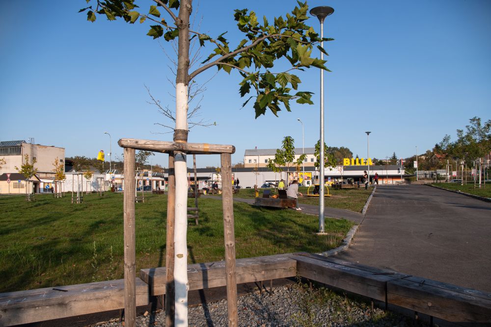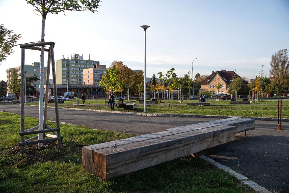 Plocha vznikla vyčleněním bývalé příjezdové komunikace a točny pro autobusy, které jsou odkloněny. Nenacházely se tu však žádné prvky mobiliáře, takže místo nebylo příjemné pro pobyt (vzhledem k občasným vedrům přímo odrazovalo). Nerostl tu ani jeden strom.