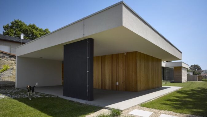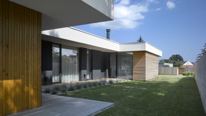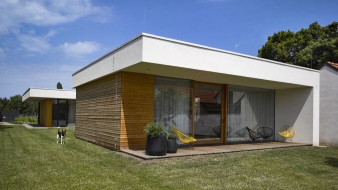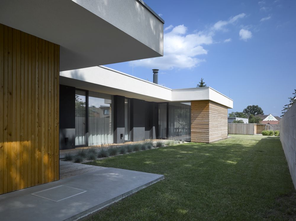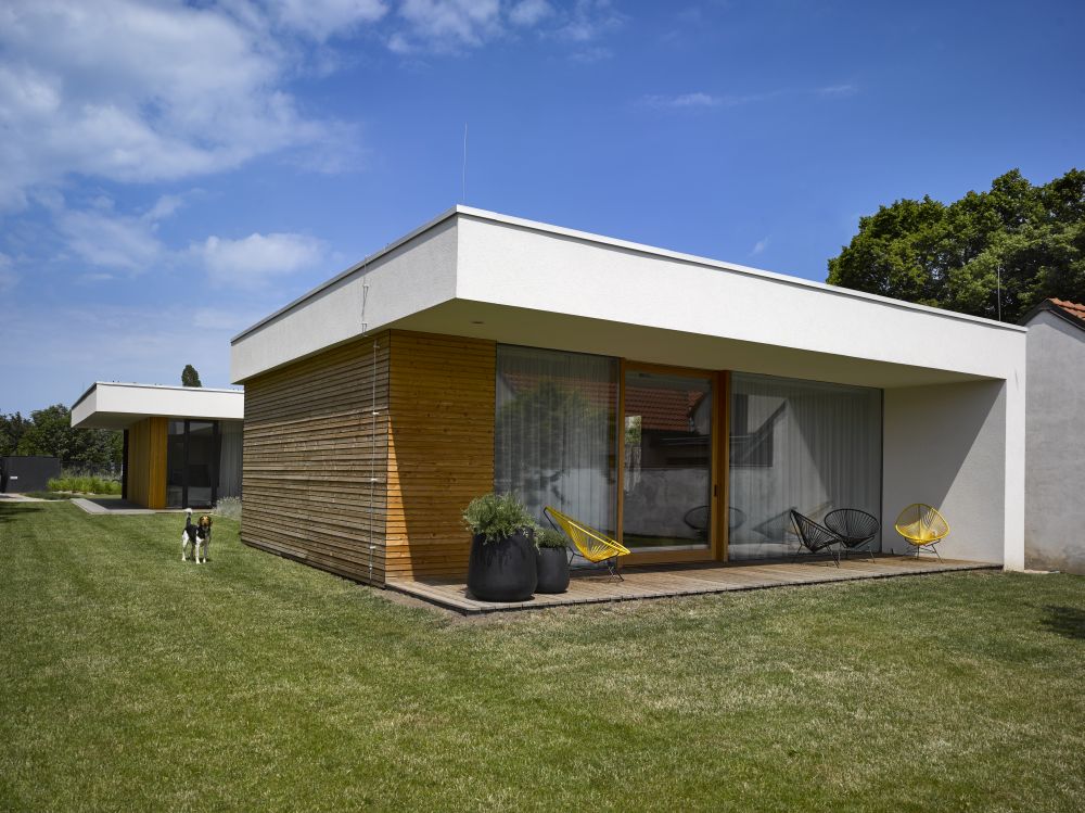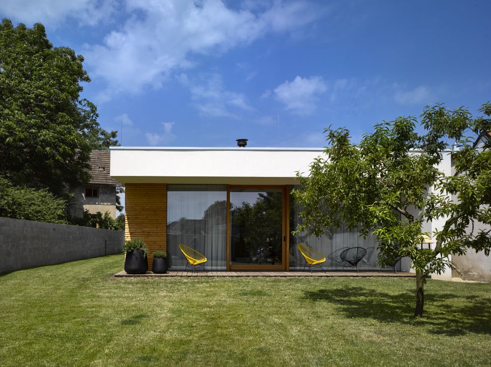 Jednoduchý kompaktní dům je otevřený do zahrady. Bude přirozeně se svými majiteli i zahradou stárnout a stane se nedílnou součástí původní zástavby.
