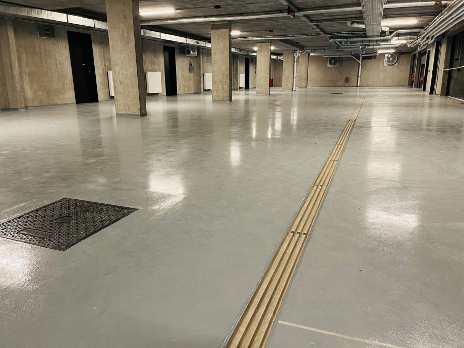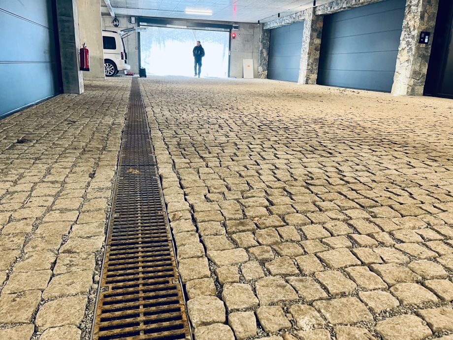 Parkovací stání umístěná v suterénu hotelu jsou odvodněna odpařovacími žlaby PG 1500, které jsou napojeny na odtokové nerezové díly. PG žlaby z polymerického betonu mají nízkou stavební výšku jen 50 mm a nezasahují tak výrazně do nosné konstrukce. Úkapová voda nebo sníh z automobilů se odpaří ve speciálně tvarovaných drážkách žlabu a nadbytečná voda odteče. Bezroštový systém zajišťuje snadné čistění a také je při pojezdu zcela tichý. Takový benefit hosté v budoucnu určitě ocení.