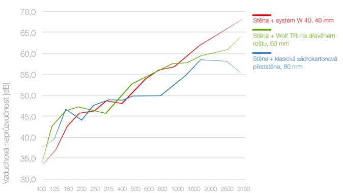 neprůzvučnost pouhých 45 dB. Dostat se na požadovaných 53 dB je v