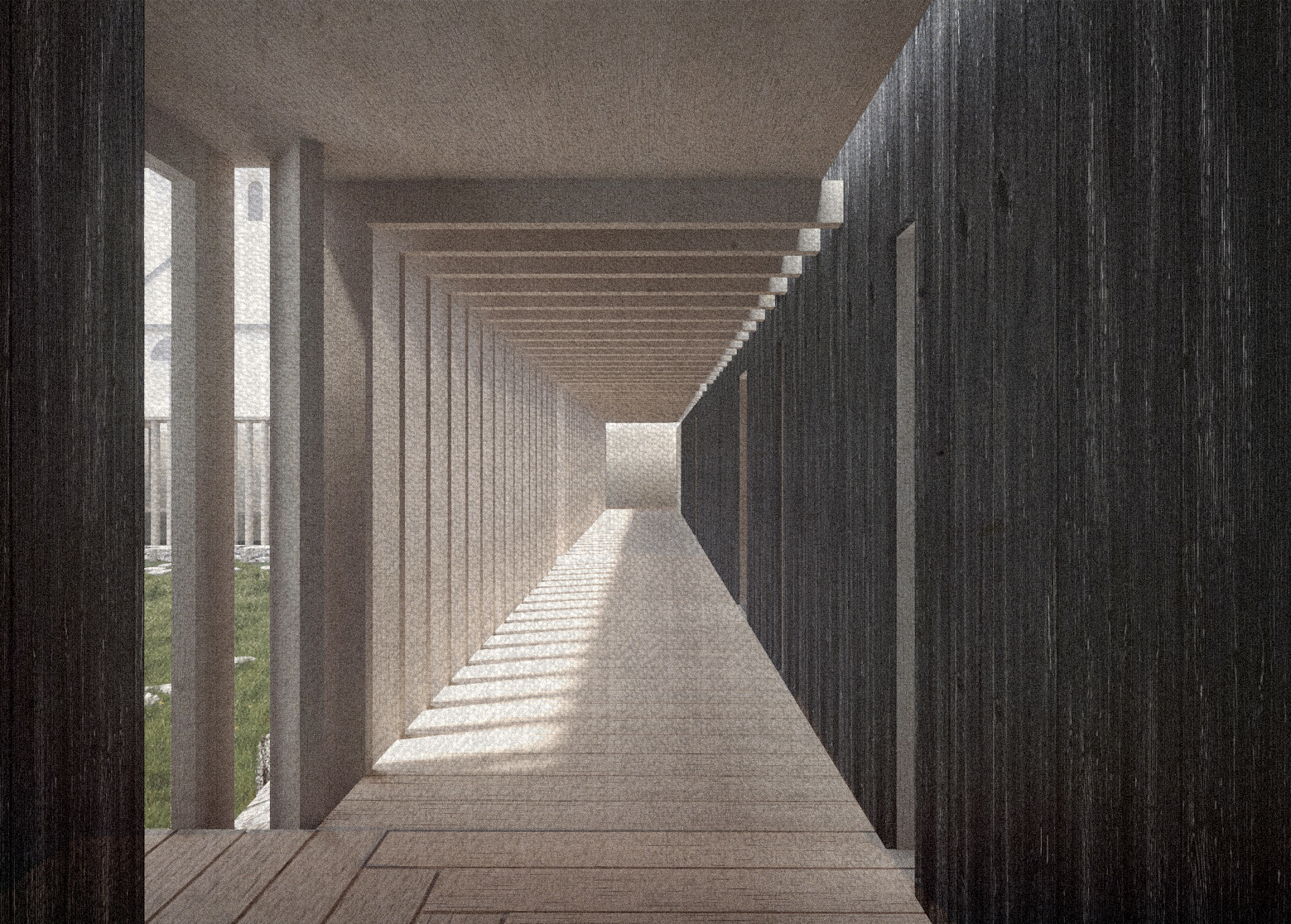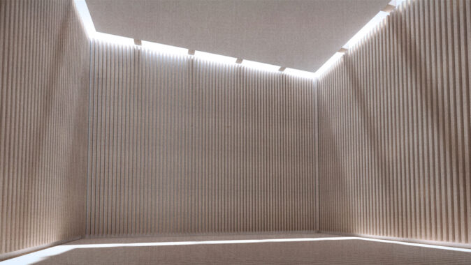 priestor pre pozastavenie a meditáciu. Materiál stavby umocňuje