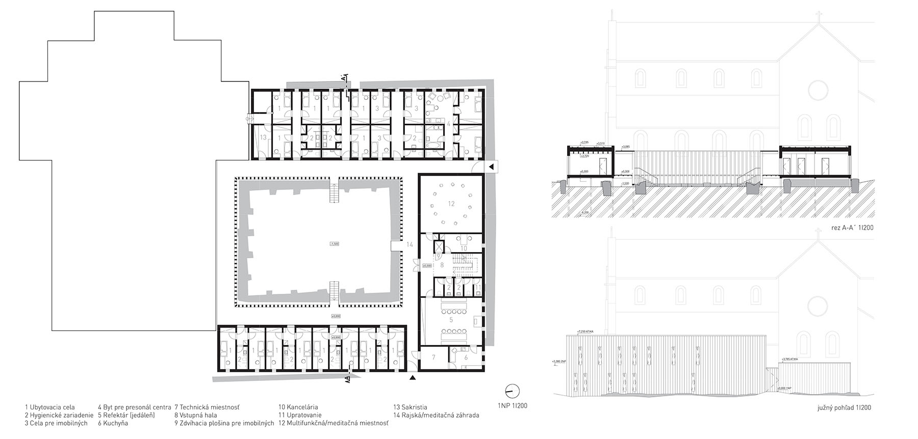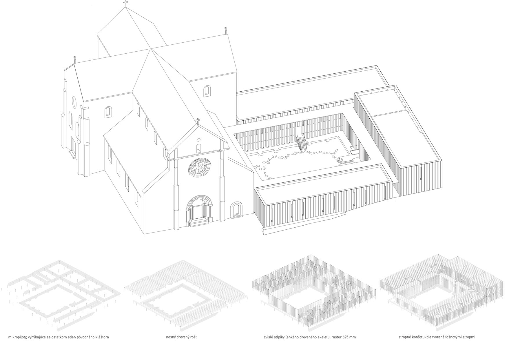 mikropilotách nad stenami pôvodného kamenného kláštora a tým zachováva