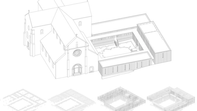 stěny původního kamenného kláštera, které tím je chrání. Kender vytváří prostor