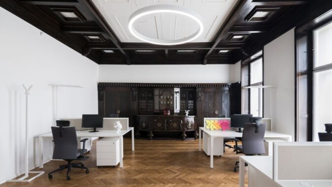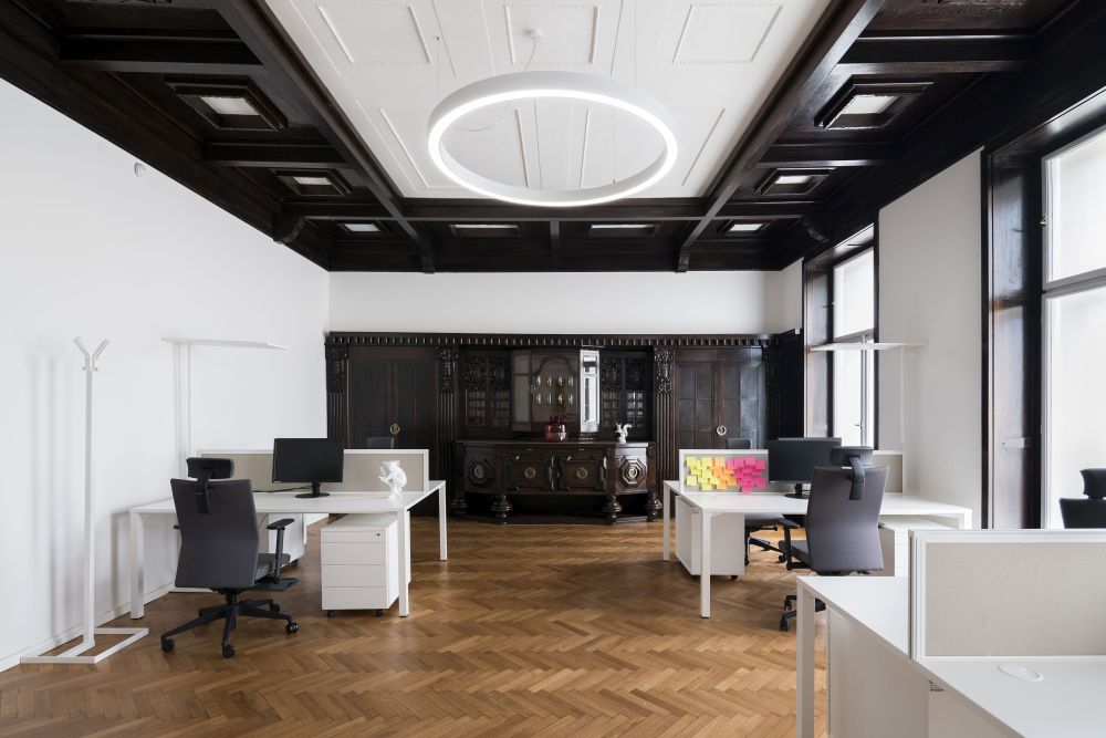 Rekonstrukce třetího podlaží klasicistně secesní budovy v ulici Na Florenci měla za cíl ponechat co nejvíce z částečně dochovaného původního vybavení a zároveň vytvořit prostor pro kanceláře.