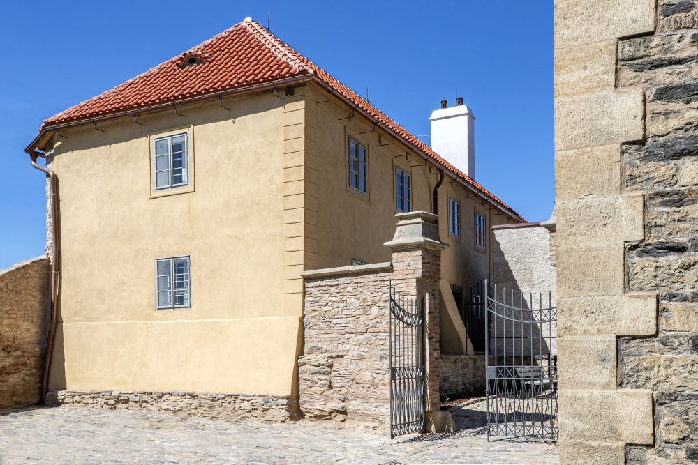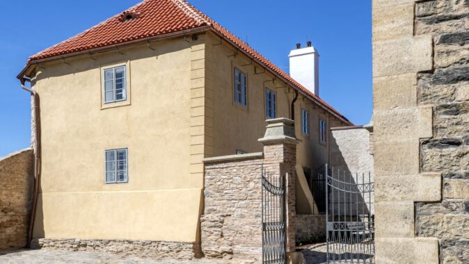 hradební zeď, parter a parkán.