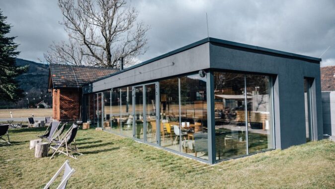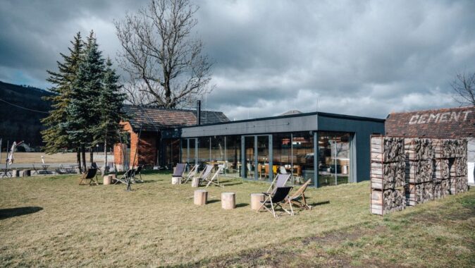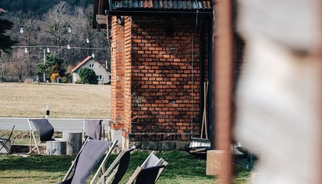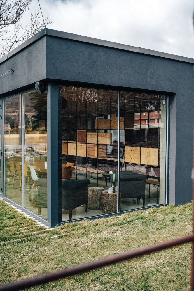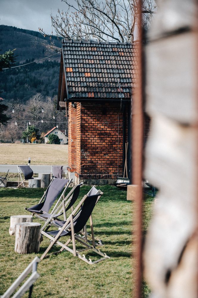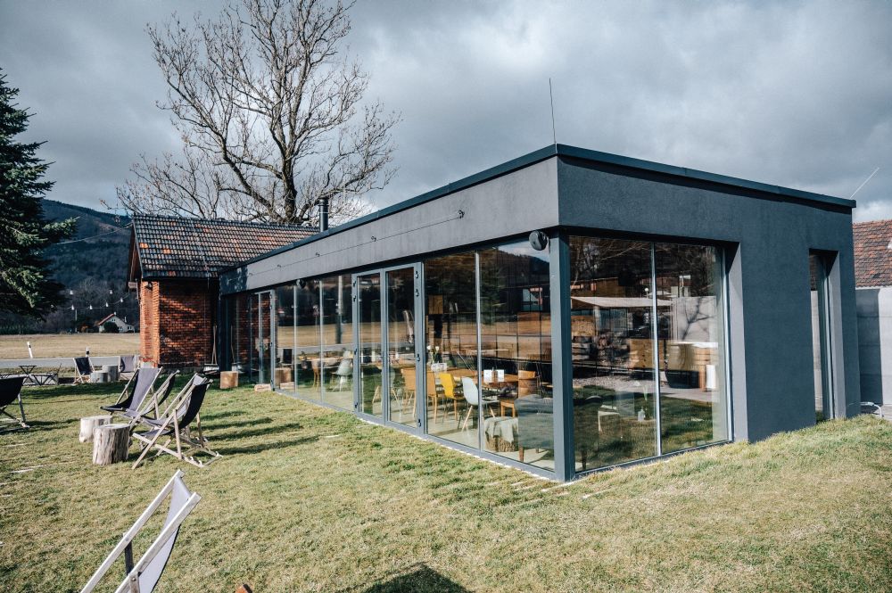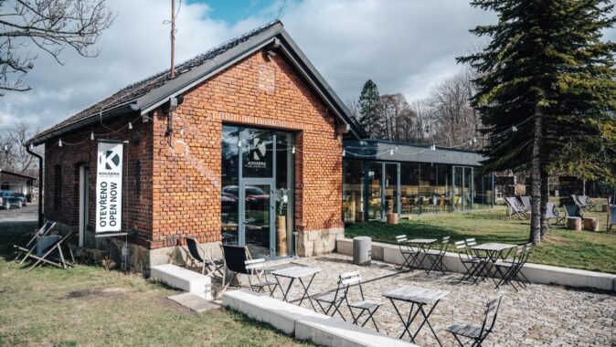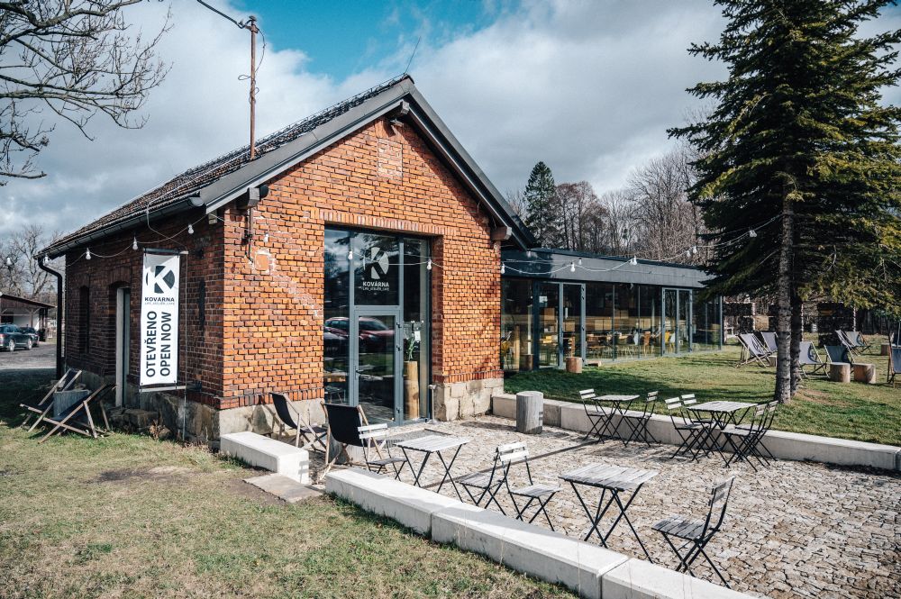Sto let stará budova kovárny nyní slouží jako kavárna, dostavěna byla o nové křídlo, kde sídlí náš ateliér. Původní část v exteriéru i uvnitř tvoří cihly. Určují základní výraz interiéru a spolu s kovovými prvky (které ke kovárně patří) vytváří mírně industriální nádech stavby.