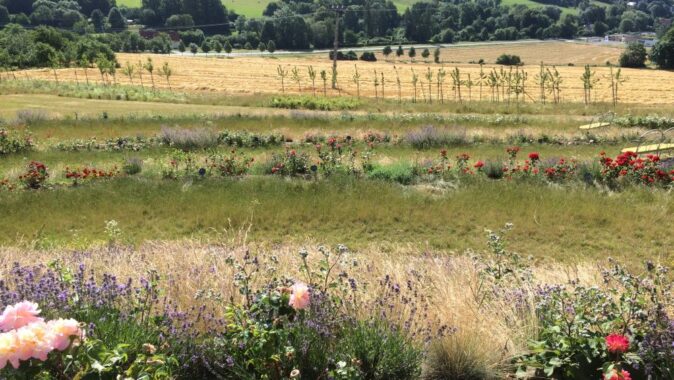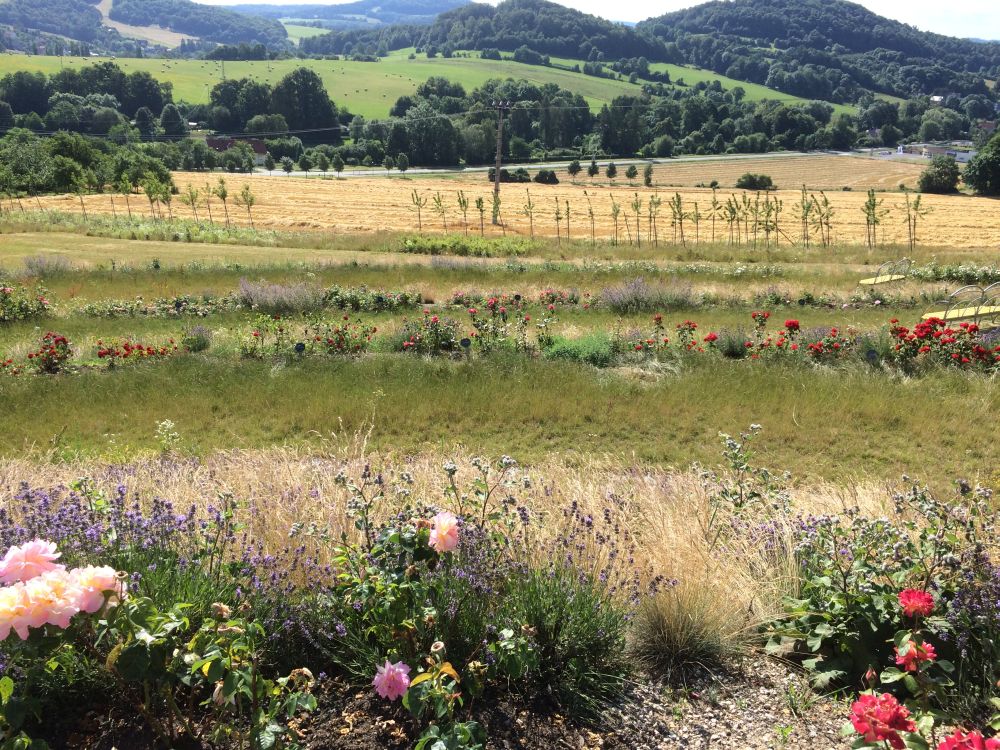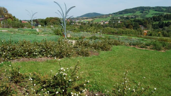 Slunný háj a na něj navazující Zahradu růží. Jedná se o jižně orientovaný mírně