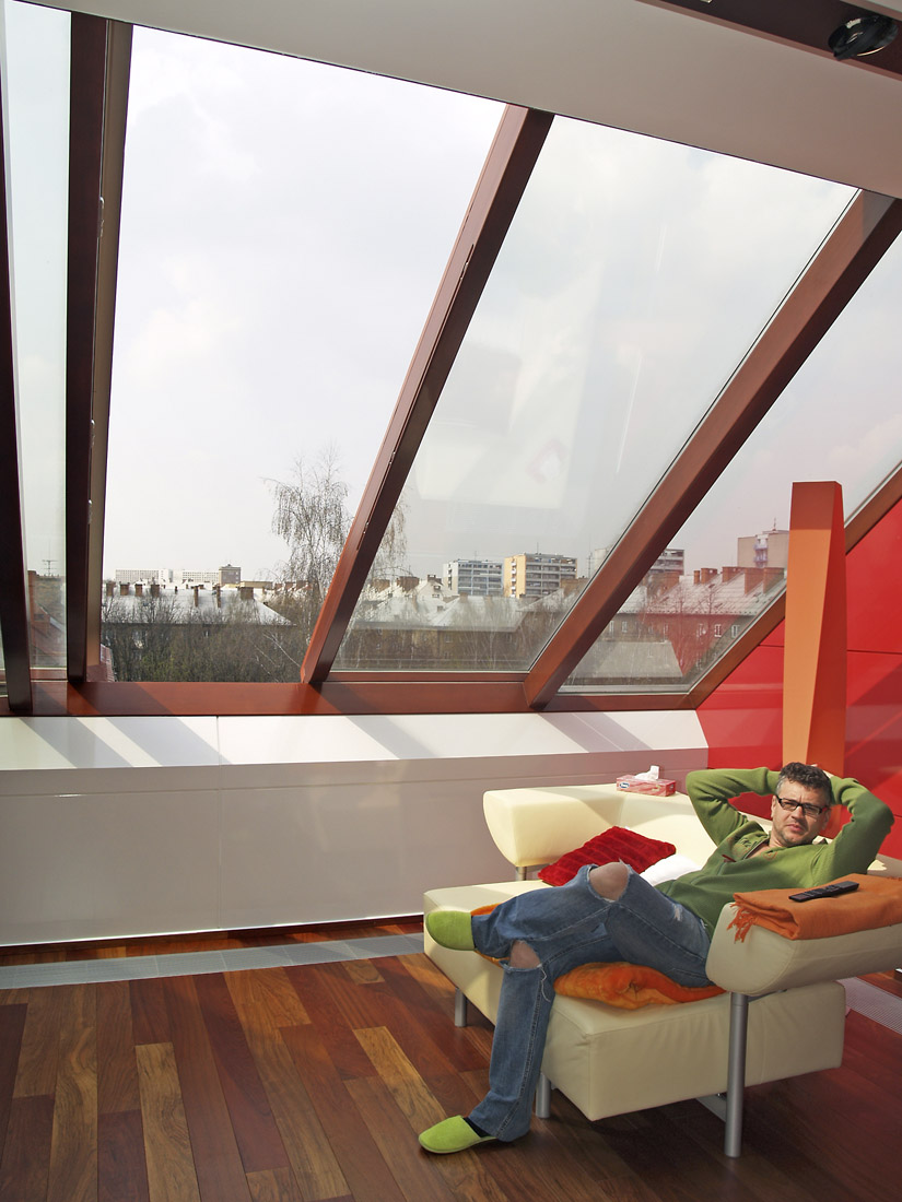„Soukromým investorům i developerům ze zkušenosti tvrdím, že investice do kvalitního a krásného střešního prosklení se jim bohatě vrátí – v prodejní ceně bytu či v radosti z bydlení v něm. Schválně si tuto koupelnu představte s jedním či dvěma běžnými typovými střešními okny. Je to pro vás rozdíl?“ říká Jakub Formánek za tým českého rodinného výrobce Solara.