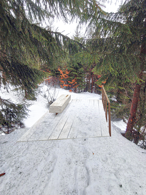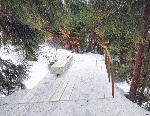 Ze dřeva, nebo z oceli? Tým Svatopetrské lávky ateliéru Mádr dlouho prověřoval materiálové koncepty. Zvítězilo exotické dřevo azobé lávky Fošínka, které mnohonásobně prodlouží životnost mostovky. Druhý ateliérový tým navrhl lávku přes Friesovu strouhu, u soutoku s Klínovým potokem nedaleko Sloního vodopádu, tak skromnou, že téměř nebude vidět, prostě Nelávku.