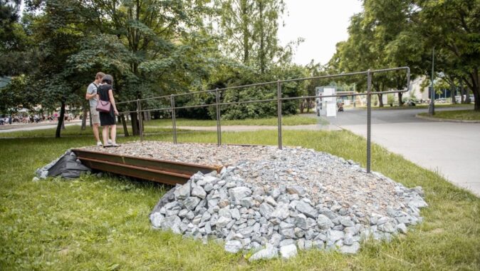 Lávka Klínovvka přes koryto Klínového potoka, jejíž dvě v, která do názvu zašifroval tým ateliéru Valouch–Stibral, odkazují na hlavní nosný prvek lávky Vierendeelův nosník.