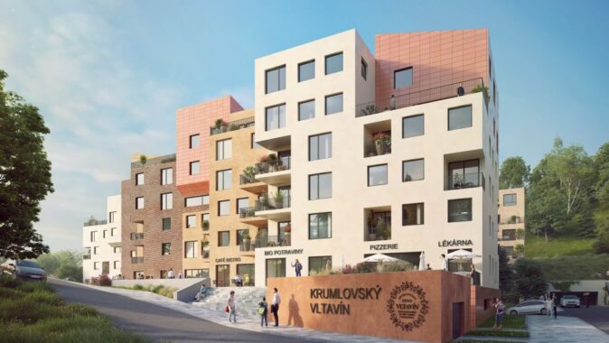 V Českém Krumlově roste nová městská čtvrť. V rámci projektu Krumlovský Vltavín bude podle návrhu architektonického ateliéru A8000 postaveno ve třech etapách celkem 62 apartmánů a 131 bytů. Šestipodlažní apartmánový dům s elegantními visutými boxy a šikminami, který je nejvýraznějším objektem celého komplexu, už je ve výstavbě. Dokončen by měl být na přelomu letošního a příštího roku. Součástí objektu jsou také komerční jednotky, které mohou budoucím vlastníkům poskytnout zázemí pro provozování obchodů, restaurace nebo kavárny.