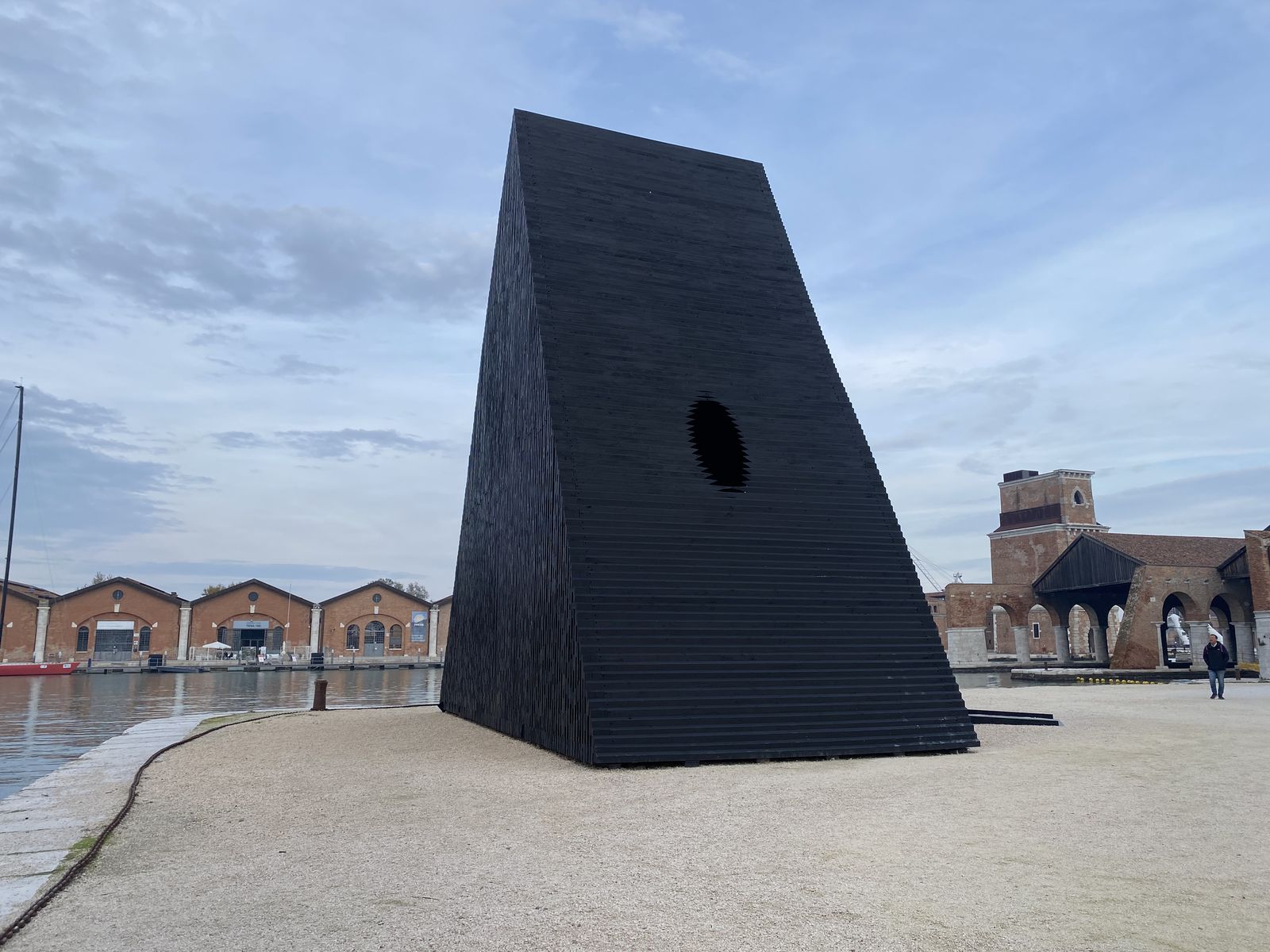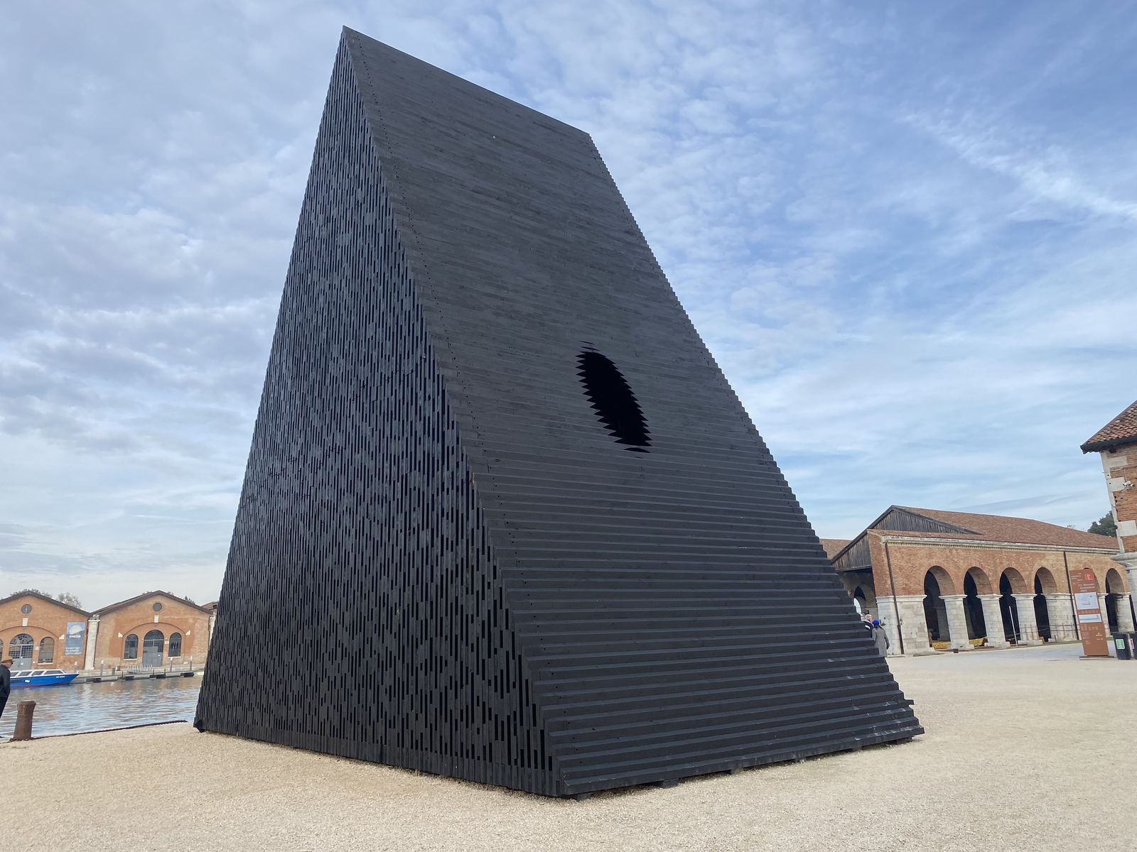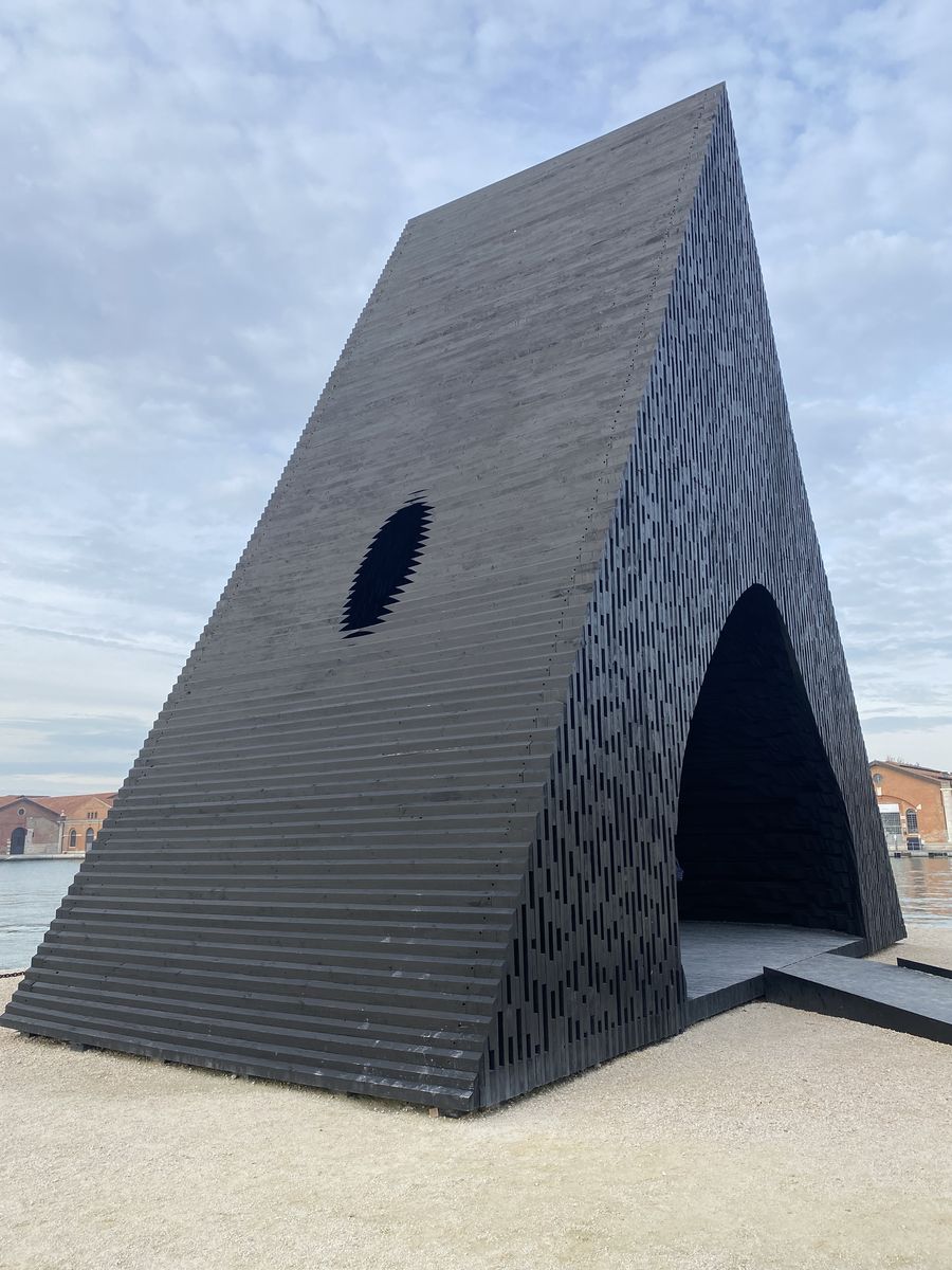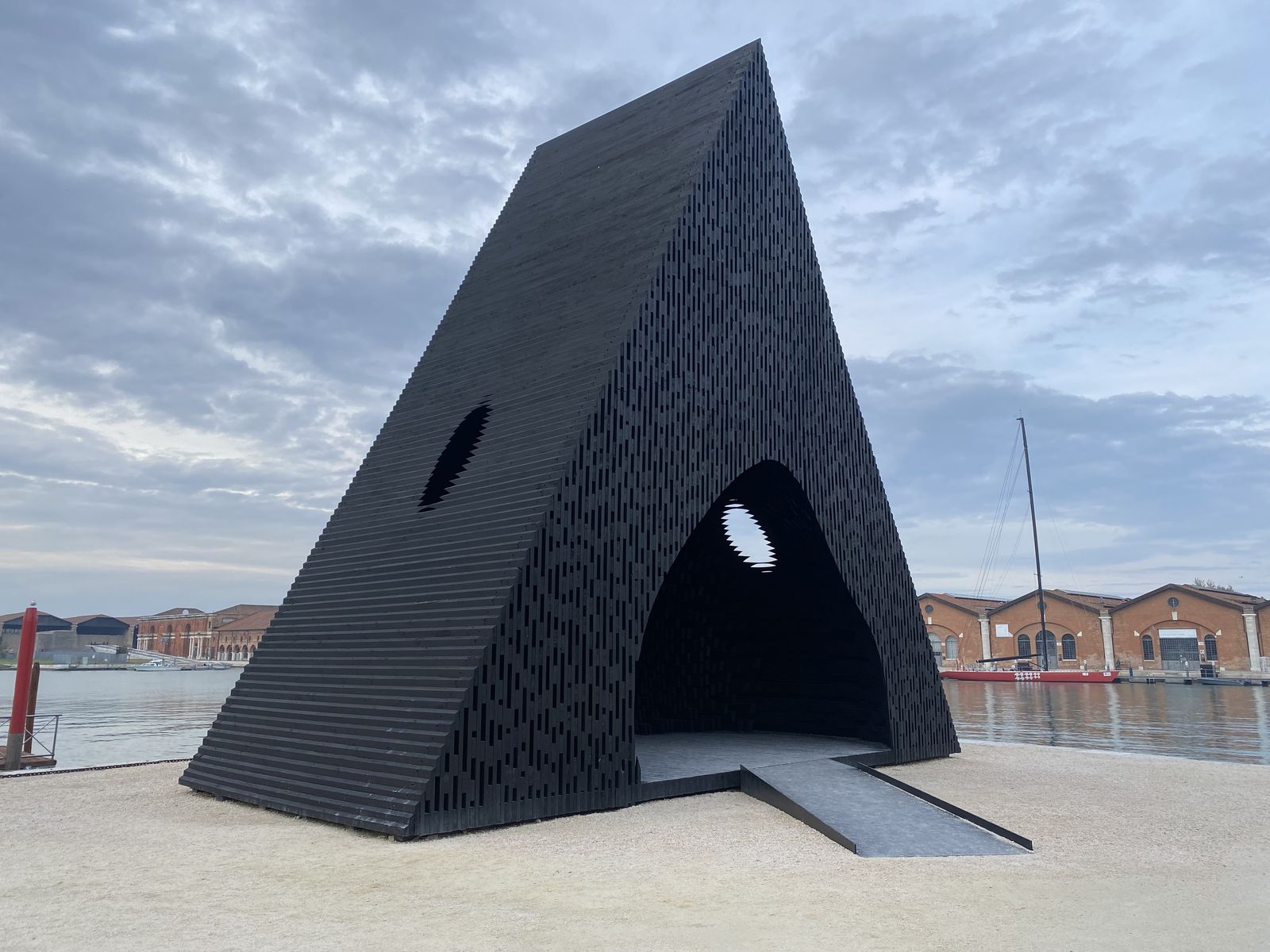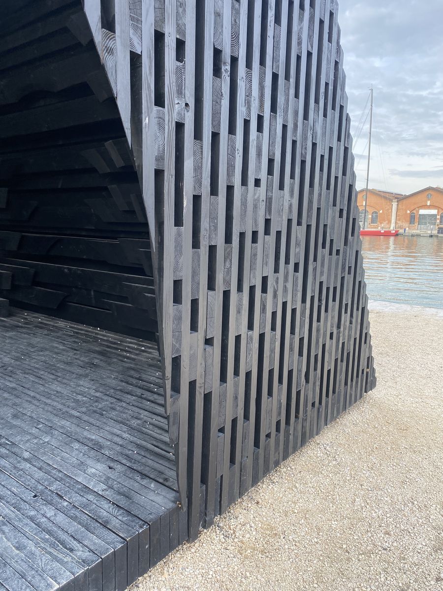 Třináctimetrová socha stojí v docích nad historickými benátskými loděnicemi a dílnami. Odvážný trojúhelníkový tvar přitahuje pozornost k vodě a okolnímu prostředí. Odvážné černé dřevo, navržené jako místo k zamyšlení a aktivnímu programování, využívá světelné paprsky pronikající skrz střechu a stěny k vytvoření atmosféry připomínající jeskyni nebo les.