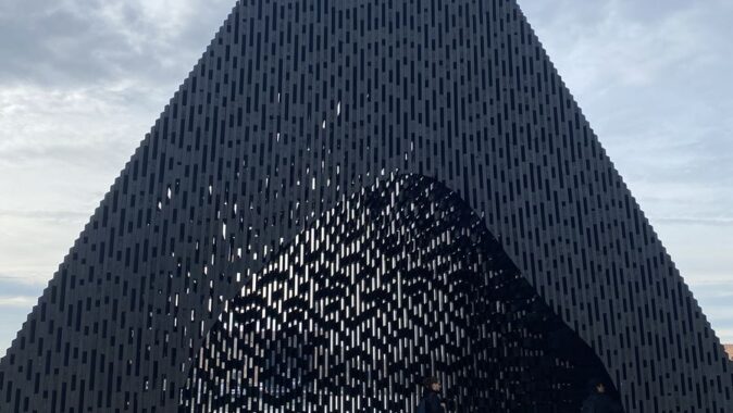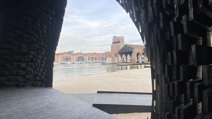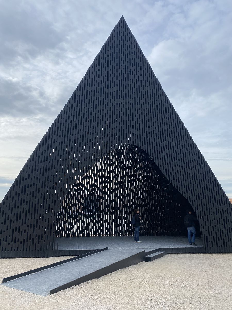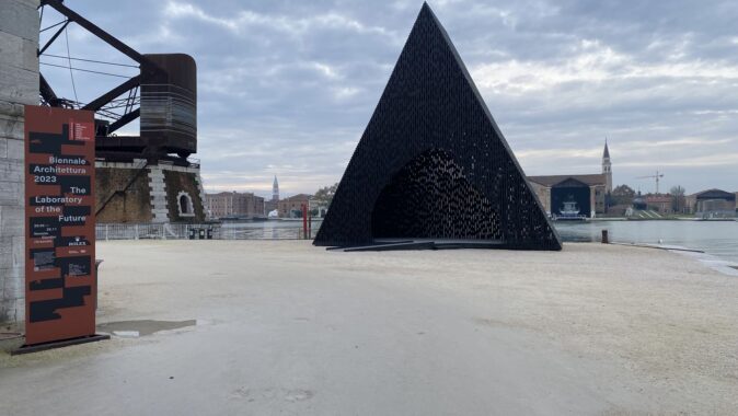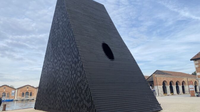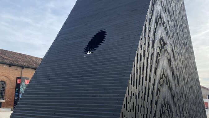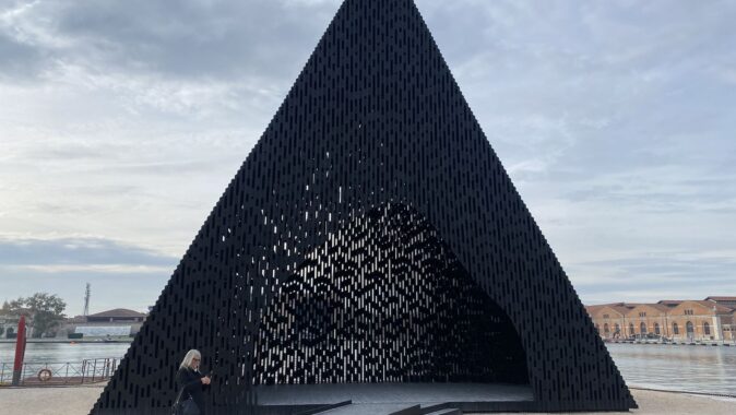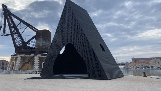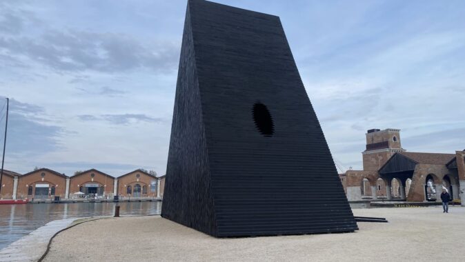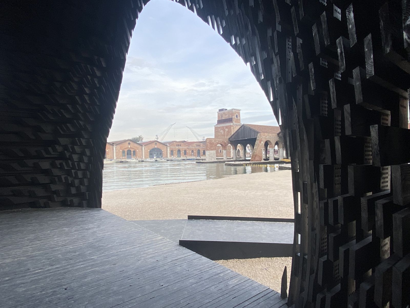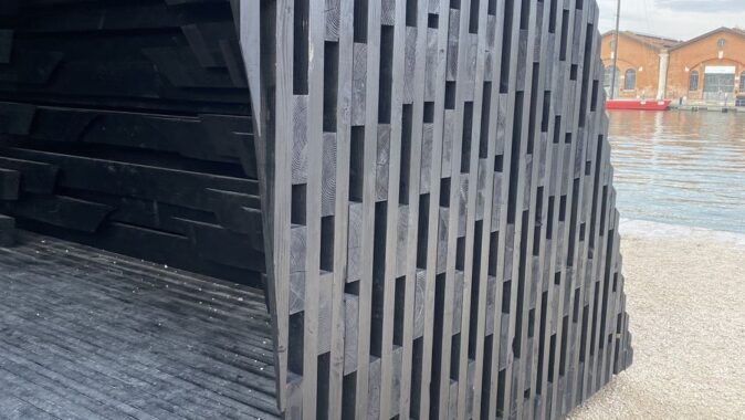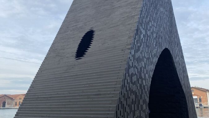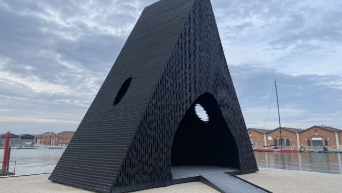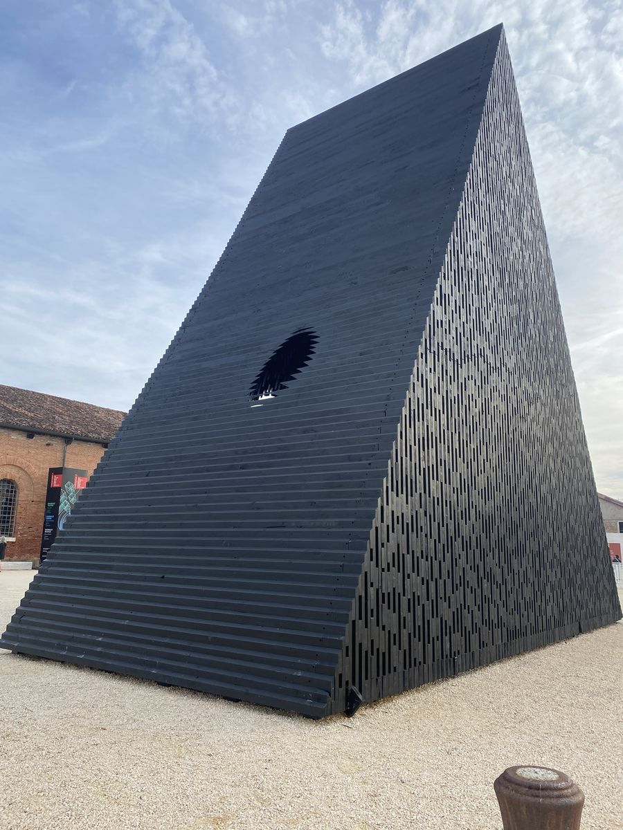 Třináctimetrová socha stojí v docích nad historickými benátskými loděnicemi a dílnami. Odvážný trojúhelníkový tvar přitahuje pozornost k vodě a okolnímu prostředí. Odvážné černé dřevo, navržené jako místo k zamyšlení a aktivnímu programování, využívá světelné paprsky pronikající skrz střechu a stěny k vytvoření atmosféry připomínající jeskyni nebo les.