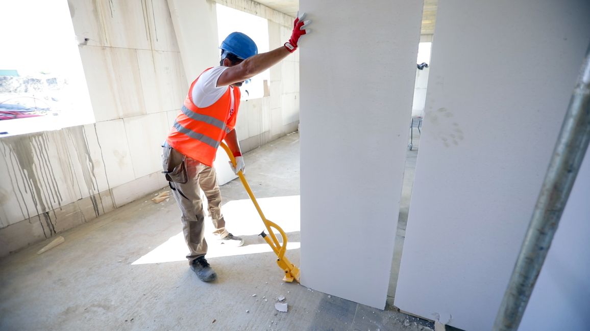 Další z novinek jsou Ytong příčkové panely, které s sebou nesou také jiný způsob montáže. Panelová prefabrikace zažívá obnovu a díky nedostatku pracovníků je také při dokončovacích pracích v interiéru potřeba najít zrychlení a usnadnění. Ytong příčkový panel se staví pomocí manipulačního vozíku (elektrického nebo mechanického) a tím usnadňuje pohyb i s tak velkým panelem, jako je výška místnosti. Výroba je zakázková, dostanete tedy až na místo panel dle předem připravených plánů na míru. Tím se sníží logistická zátěž i objem stavebního odpadu. Například jeden celý byt o dispozici 2+kk udělá pracovní četa za jeden den.