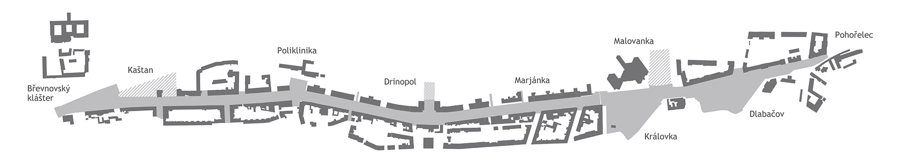 setkávání. Jedná se o úsek od Patočkovy ulice až po Dlabačov. V úseku