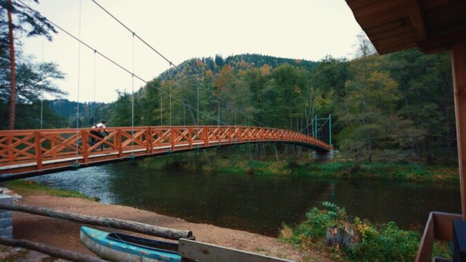 Visutá ocelová lávka pro pěší a cyklisty byla