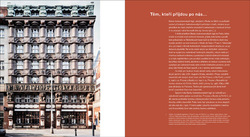 Vypravuje příběh československých legií a budování jejich bankovního ústavu, představuje tvůrce stavby i historii místa, kde stojí, přináší neznámé údaje o proinvestovaných částkách, stavebních firmách či původním rozvržení interiérů a názorným způsobem vysvětluje sochařskou výzdobu fasády domu.