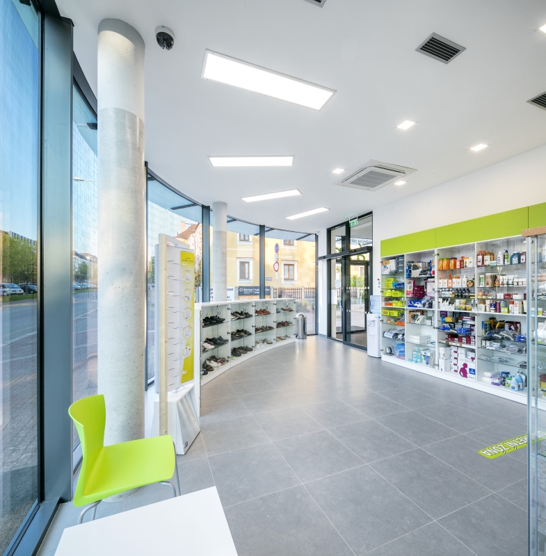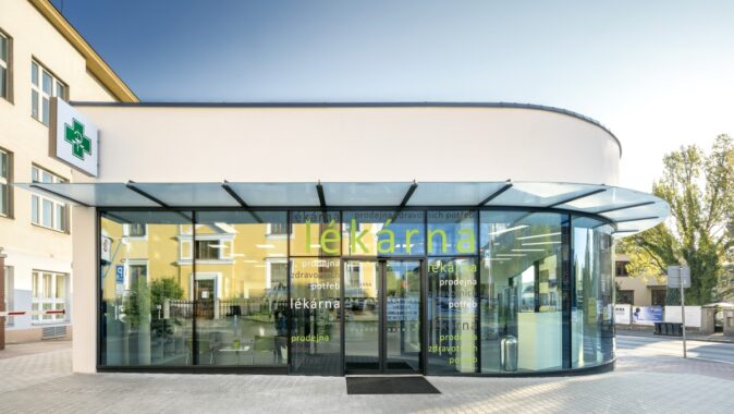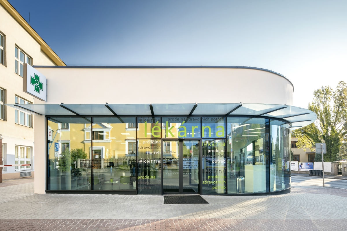 Klaudiánova nemocnice v Mladé Boleslavi je pavilonová stavba se všeobecnou lékařskou péčí. V předpolí nemocnice byla v místě dosluhující stávající lékárny navržena novostavba se stejným účelem. Architektura nové lékárny navazuje na stávající zástavbu „nemocniční zdi“. Pomáhá jasně definovat nároží a předprostor vstupu do mladoboleslavské nemocnice. Architektonický návrh pracoval s jednoduchou koncepcí linie „stuhy“ spojující tvarově výrazné nadpraží nároží a zvýšený parapet podél rušné ulice. Významným a čistým detailem je použité tvarosloví prosklené fasády s ohýbanými skly v nároží, přidávající hravost a jemnost.