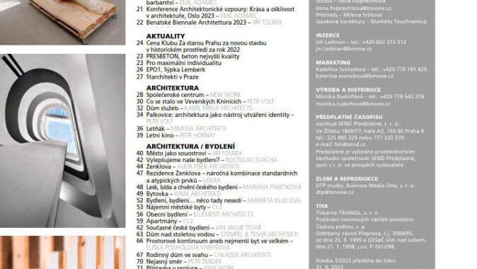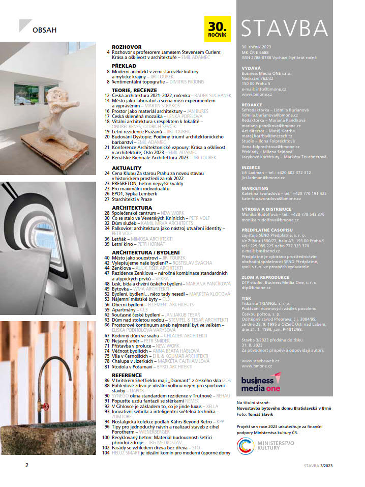 texty jsou doplněny editorským výběrem staveb. Na úvod čísla jsme zařadili tři