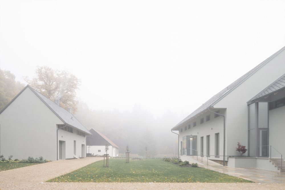 Archetypální forma budov je dotažena do důsledku v exteriéru, taktéž zapojením do středu lesa, ve kterém se nachází. Interiéry jsou odkazem na nadstandardní vybavení lesních residencí minulých staletí ovšem ve zcela soudobém duchu.