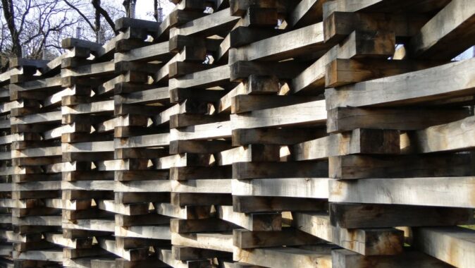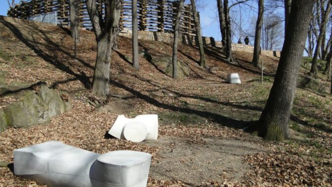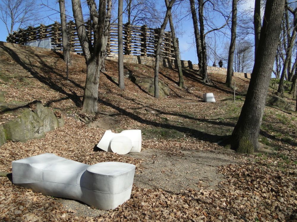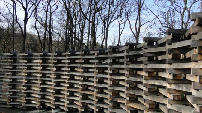 propletených a ocelovými táhly sepnutých dubových pražců vymezuje na rozhraní