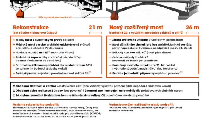 prosazuje opravu, považují současný most za architektonicky a památkově