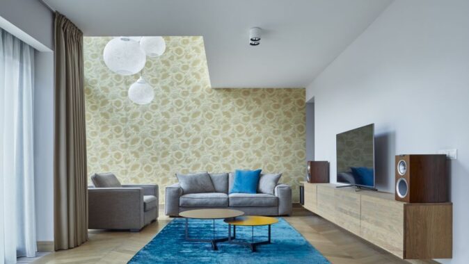 vstupní haly až po ložnice, kde je modrá už velmi tlumená, tak jak nebe ve