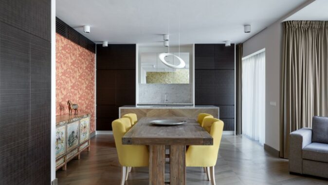 části a se dvěma koupelnami. Přáním klienta bylo vytvořit barevný interiér.