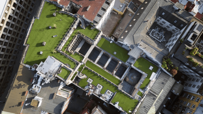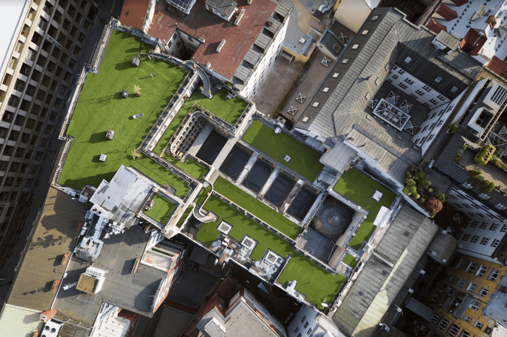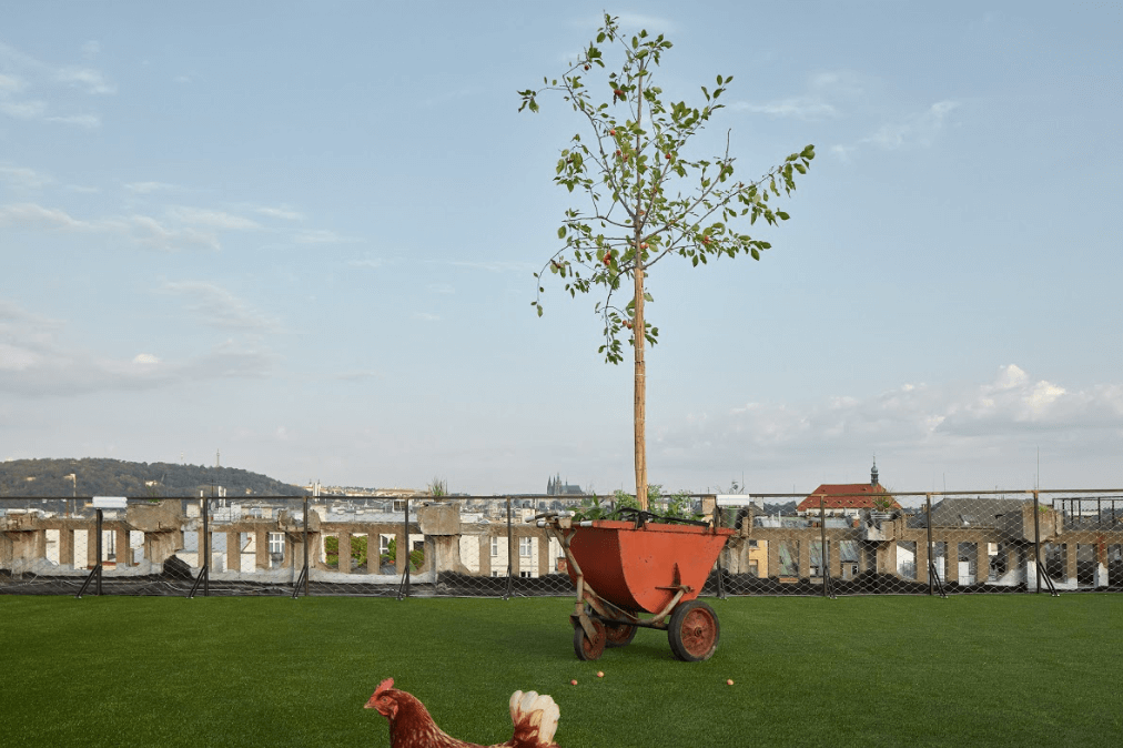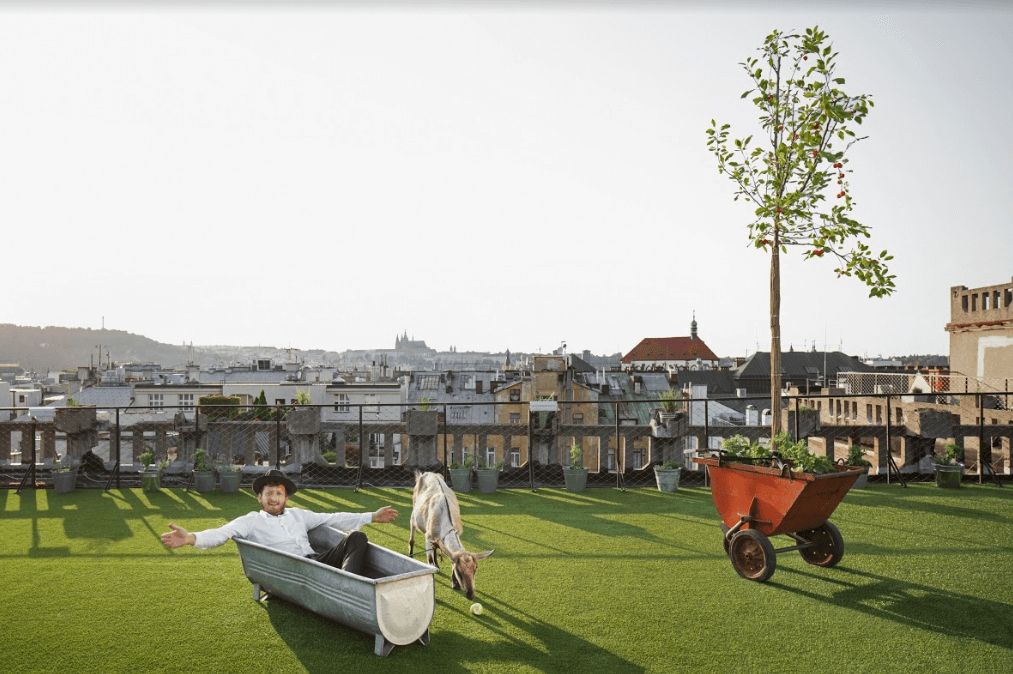 Střecha Lucerny prošla první částí rekonstrukce už v minulém roce. Ondřej Kobza, který místu vdechnul život kulturními akcemi nejrůznějšího typu, vysvětluje, co stálo za počinem Louka nad Lucernou: „Inspirací pro zatravnění střechy Lucerny byly mimo jiné i zahraniční zákony, které ve vyspělých zemích, například ve Francii, fungují. Každá nová budova tam musí mít na střeše zahradu či solární panely. Nově ‘zazelenalá‘ místa tak odpovídají na stále se zvyšující počet ploch, která zabírají auta. A to je mi více než sympatické.“