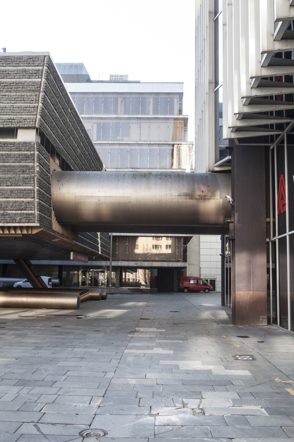 plynovodního potrubí, které vytváří tunelové spojení všech tří budov a