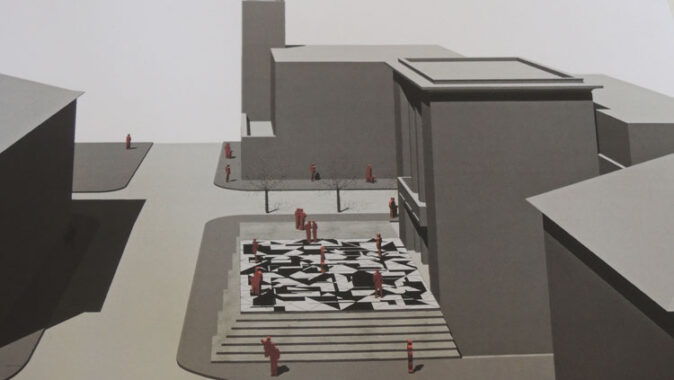 studii úprav piazzety Vrchlického divadla v Lounech. Návrh počítá