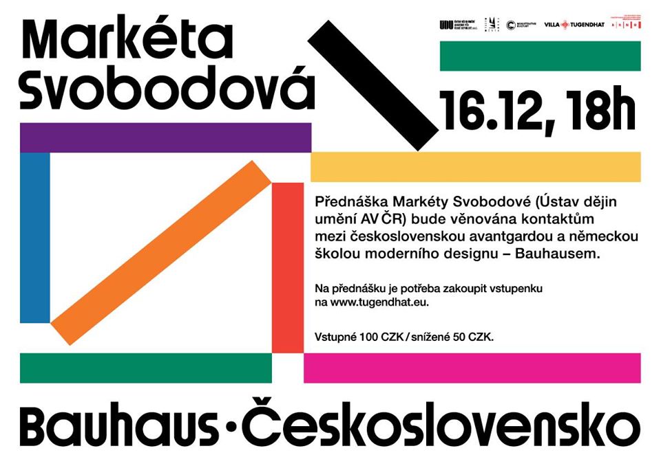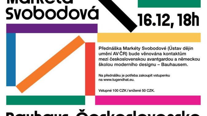 Přednáška Markéty Svobodové (Ústav dějin umění AVČR) BAUHAUS ↔ ČESKOSLOVENSKO bude věnována kontaktům mezi československou avantgardou a německou školou moderního designu – Bauhausem.