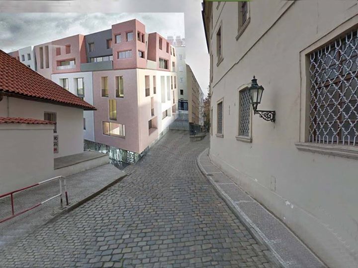 Pro stavbu, o níž jedná investor 17 let, před časem úřady vydaly územní rozhodnutí. O stavební povolení požádal na konci loňského roku. Odpůrci stavby odkazují na zamítavé stanovisko ministerstva kultury a připomínky Národního památkového ústavu. Ministerstvo navíc v současnosti rozhoduje o stížnosti občanských iniciativ, které proti plánované stavbě bojují. Projekt však v minulosti získal souhlas magistrátních památkářů. Dům navrhl architekt Zdeněk Fránek, projekt se několikrát měnil.