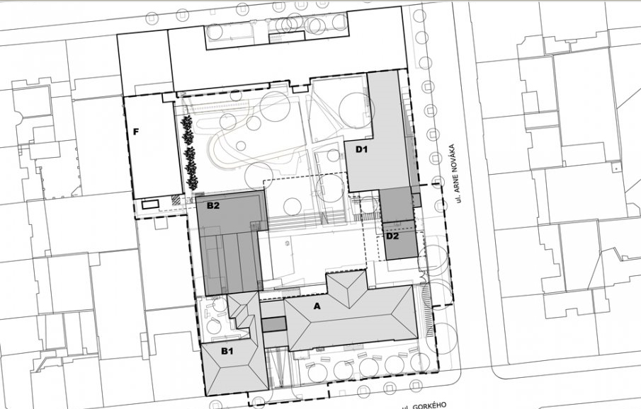 Arne Nováka. Rekonstrukce budov A, B1 a demolice budovy B2 s výstavbou