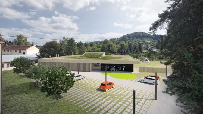 společným provozním a technickým zázemím. V návrhu je kompaktní pavilon umístěn