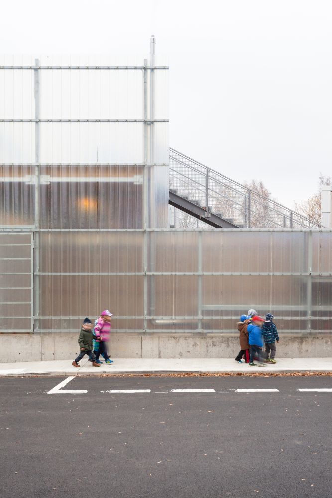 Na porotu zapůsobila jednoduchost a zdrženlivost uspořádání budovy školky, stejně jako využití prostředků, díky nimž se architektům podařilo realizovat projekt poskytující komplexní prostorový zážitek. Budova zasazená do venkovského prostředí je překvapivá, záhadná a zároveň současná. Porota považuje za inspirativní univerzální architektonické vlastnosti stavby a zároveň její citlivost vůči fyzickému kontextu místa s jeho omezenými rozměry. Každá třída mateřské školy má svůj vlastní duplex s prostorem pro aktivity i spánek. Ten je uspořádán flexibilně a „trampolína“ hravě spojuje obě podlaží třídy. Symetrické dispoziční uspořádání objektů obklopujících nádvoří umožňuje provozovat školku s menším počtem zaměstnanců. Dvojitá fasáda i přes průsvitnost a otevřenost vyvolává u dětí pocit bezpečí. V obálce stavby byly pečlivě vyříznuty velké okenní otvory, které rámují výhled do otevřené krajiny a zároveň osvětlují prostory směrem k vnitřnímu nádvoří. Ve všech částech stavby je zjevná mimořádně citlivá pozornost věnovaná přístupnosti každého prostoru, jak v interiéru, tak v exteriéru. Vnější prostory kolem budovy a mezi jednotlivými vrstvami fasády jsou cenné svým doplňováním a rozšiřováním relativně malého místa, ale pravděpodobně nejsou zcela funkční, protože jsou úzké a zcela na sebe nenavazují. Způsob, jakým architekti dosáhli velmi vysokého standardu stavby při skromném rozpočtu, je obdivuhodný. Precizní detaily, pečlivý a inovativní design interiéru i chytré využití materiálů činí projekt výjimečným a úspěšným.