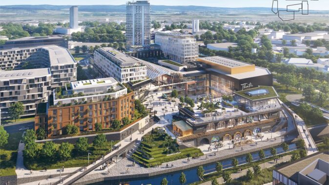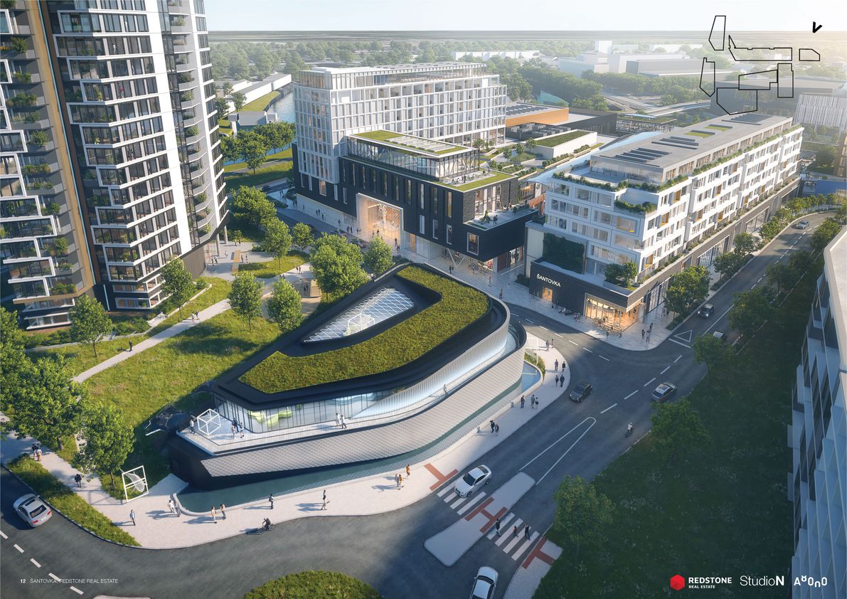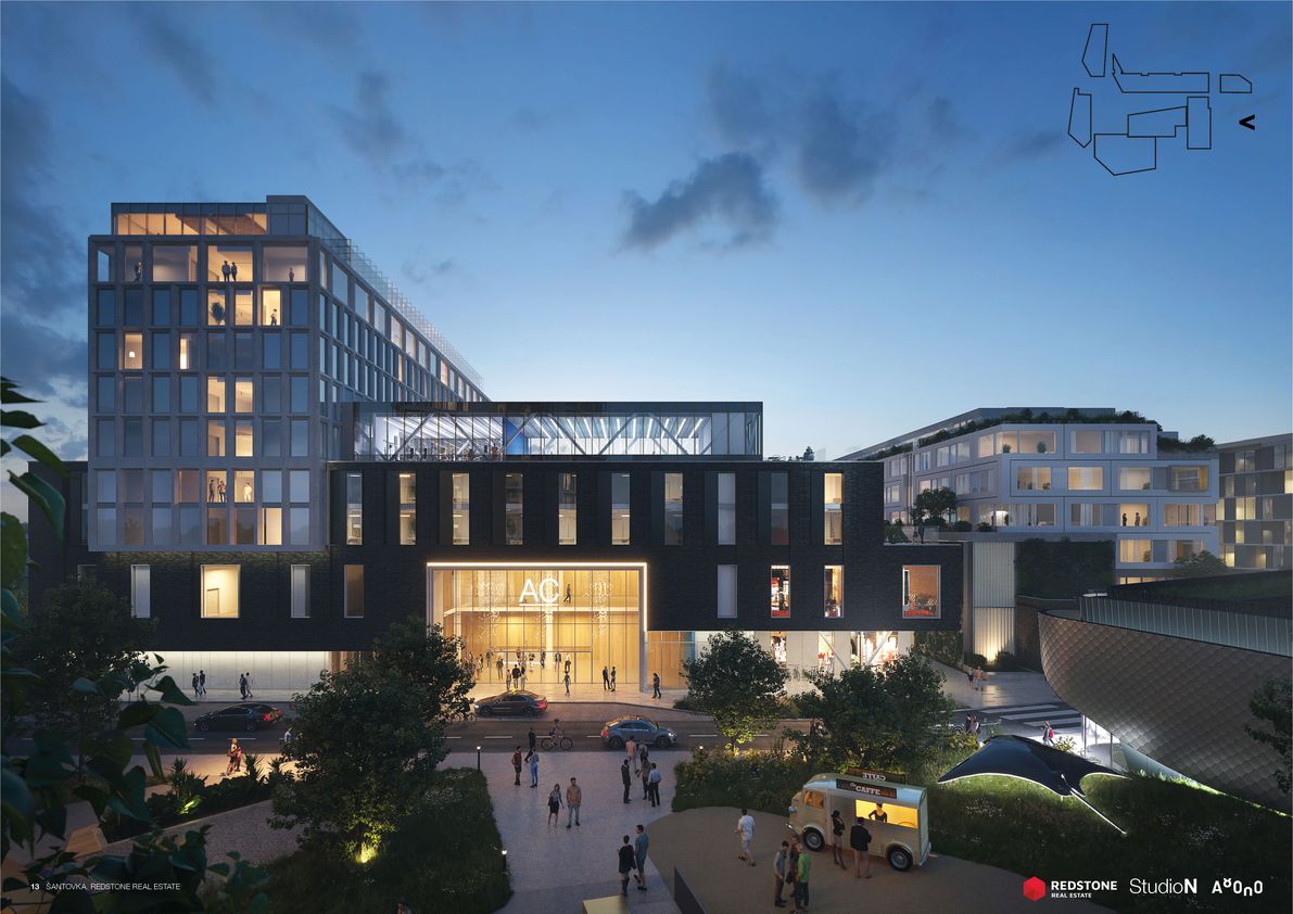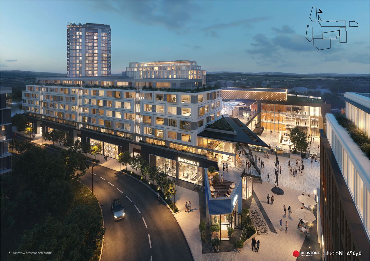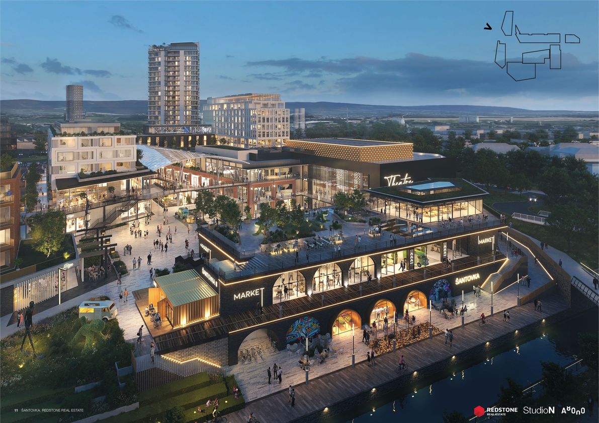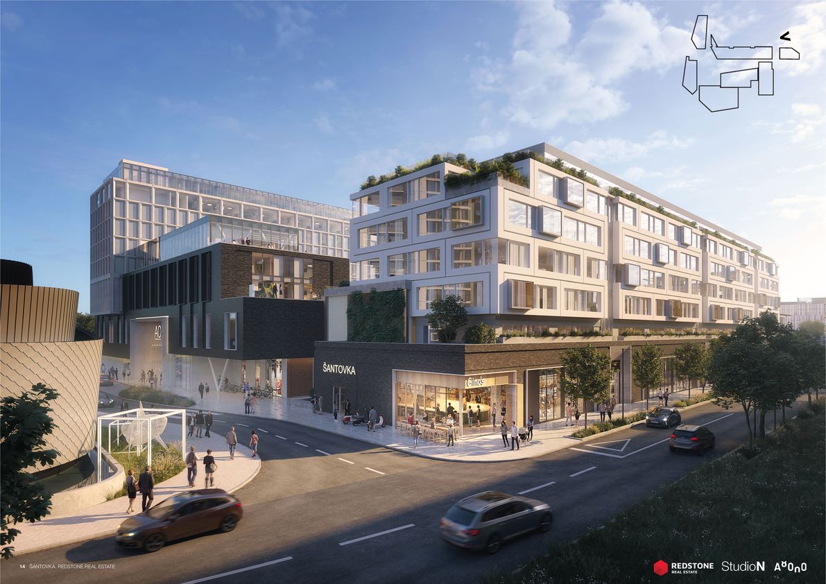 Šantovka District bude nová městská čtvrť s komerční i bytovou výstavbou. Nákupní zóna bude vystavěna kolem velkorysé piazzetty. Ateliér A8000 oslovili pro spolupráci investor i samo britské StudioN Roberta Bishopa, které stojí také za stávající Galerií Šantovka. Strategická studie českých architektů pod vedením Martina Krupauera řeší bezprostřední okolí nového obchodního centra i širší městský kontext, zaměřuje se přitom na zpřístupnění Mlýnského potoka. Architektonický návrh staví na dvou základních pilířích – nábřeží a vodním náměstí.