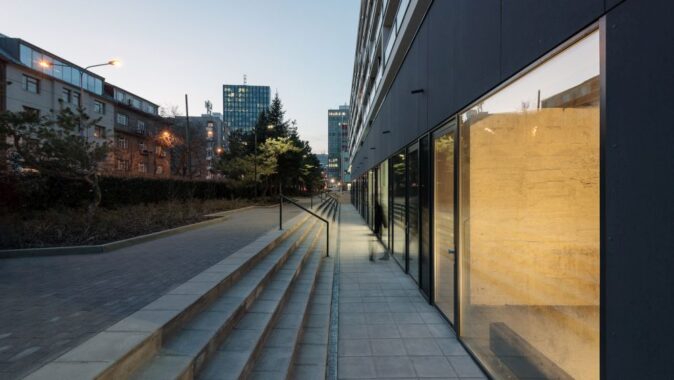 Limitujúce faktory s ktorými sme sa museli vysporiadať: takmer sto metrov dlhá uličná fasáda; konštrukčný systém typizovanej panelovej sústavy s modulom 7,2 m v parteri kombinovaný so železobetónovým skeletom; sispozičné usporiadanie v podobe päťtraktu s tým súvisiaca hĺbka domu.