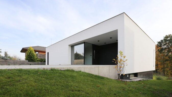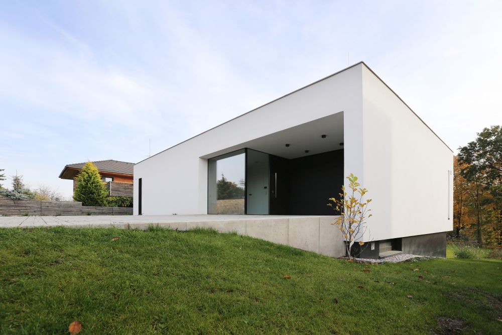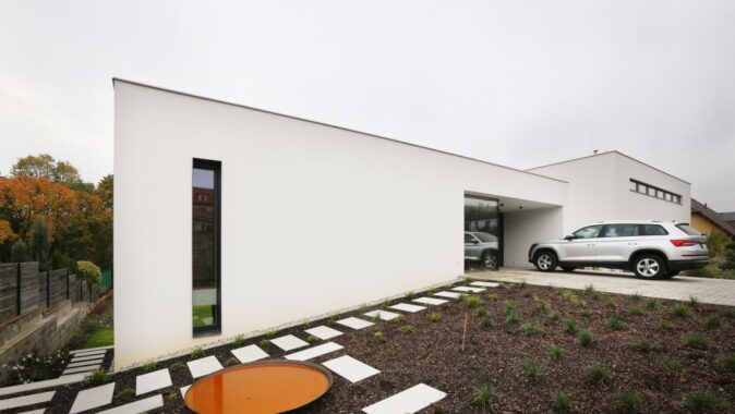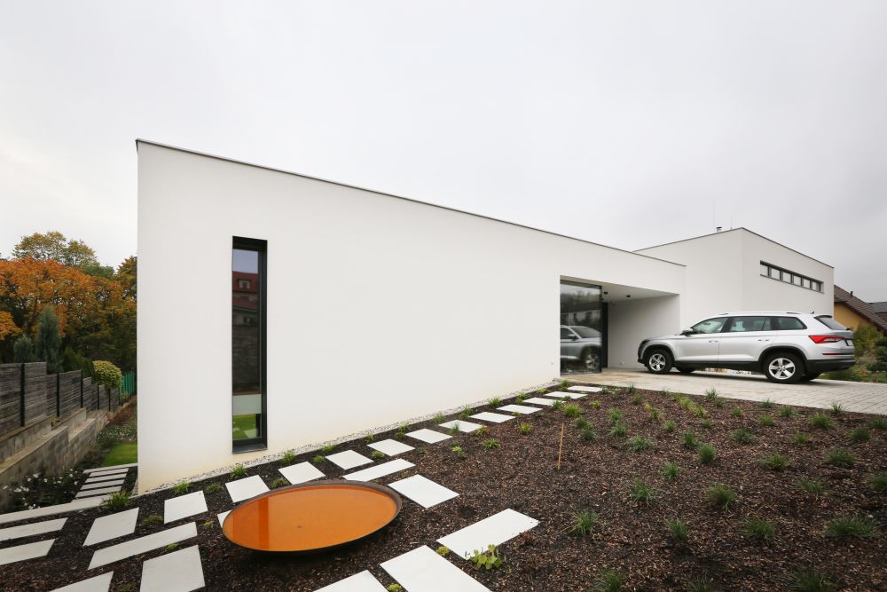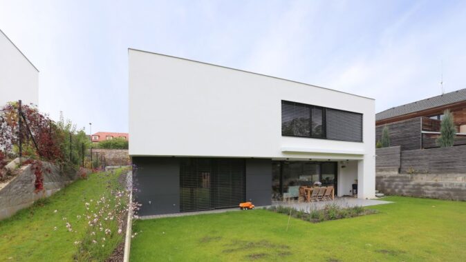 Na základě realizace domu v Mníšku pod Brdy nás oslovili noví klienti. Manželský pár, který se po letech v zahraničí vracel domů, aby jejich dvě děti začaly chodit do první třídy v Česku. Koupili si pozemek, také v Mníšku – a hned vedle našeho domu!
