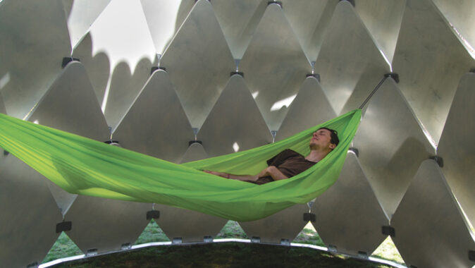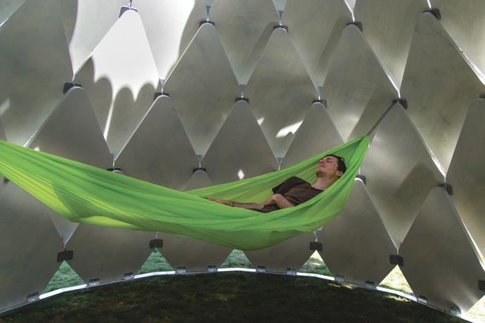 SAD společně navrhli a zrealizovali mobilní altán Pinecone, který díky šupinám,