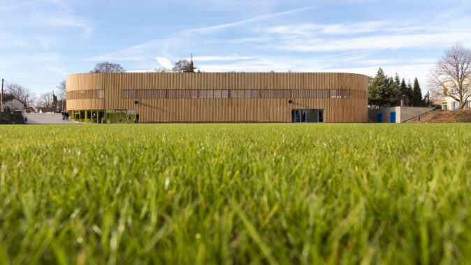 Stavba opticky uzavírá fotbalové hřiště, ale neslouží jenom pro sport. Měly by