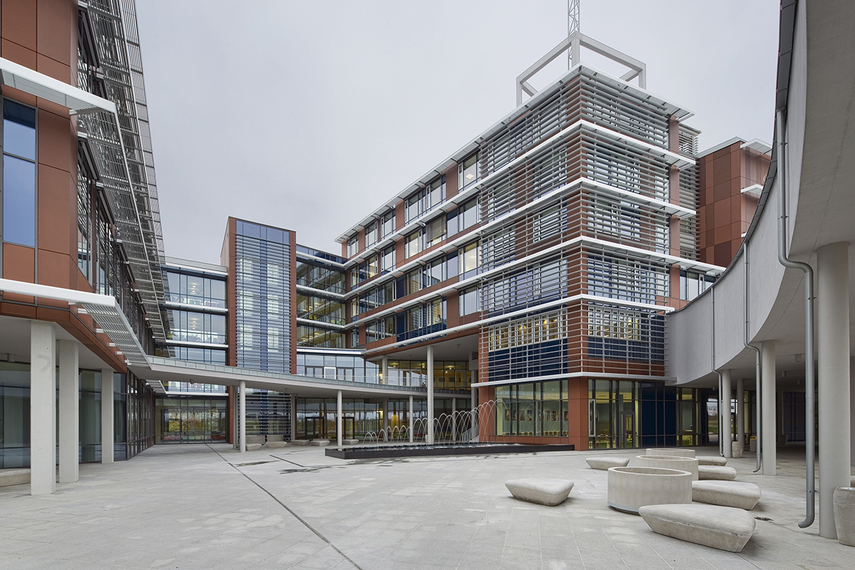 Návrhu architektonického řešení stavby se jako hlavní projektant ujal Ing. arch. Jiří Opl z plzeňského studia ATELIER SOUKUP s. r. o. Ten křídla dvou subjektů sice propojil společnými prostory, což symbolizuje úzkou vazbu mezi výzkumem a výukou, ale zároveň opticky odlišil základní hmoty výškovým posunutím. Rozsáhlé prosklení zprostředkovává kontakt s okolím a budova díky němu působí vůči okolnímu prostředí otevřeně. Moderní novostavba byla v září loňského roku slavnostně otevřena mj. za účasti zástupců vlády, kraje, vysokých škol i církve.
