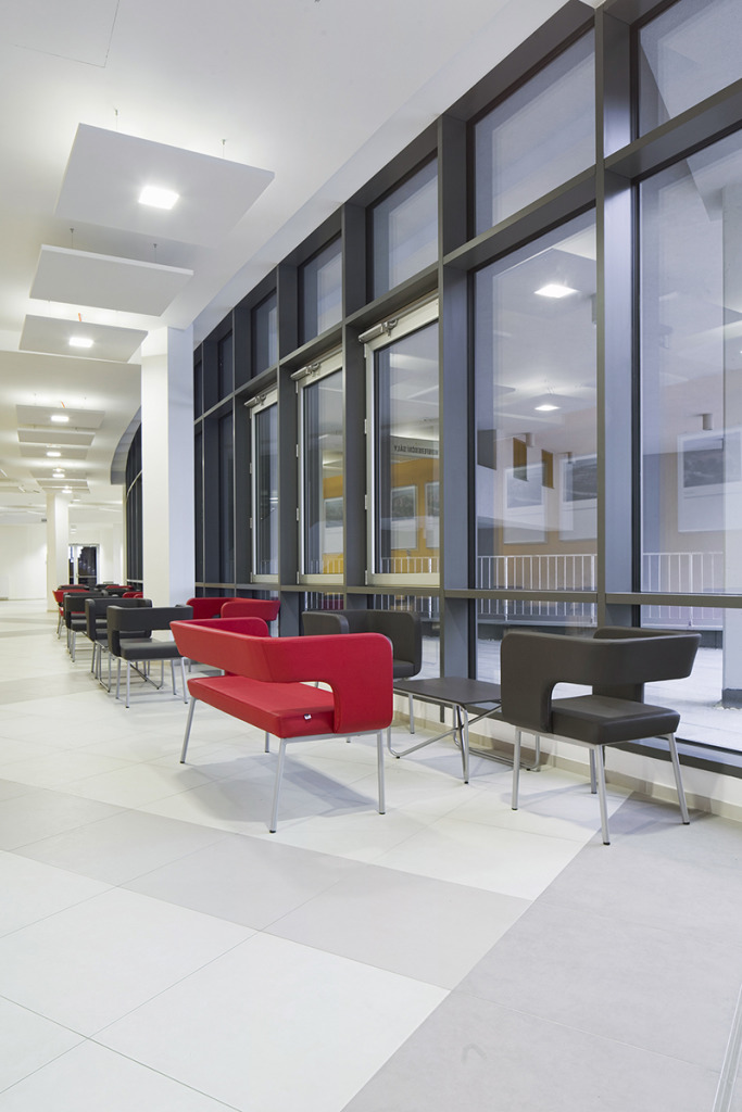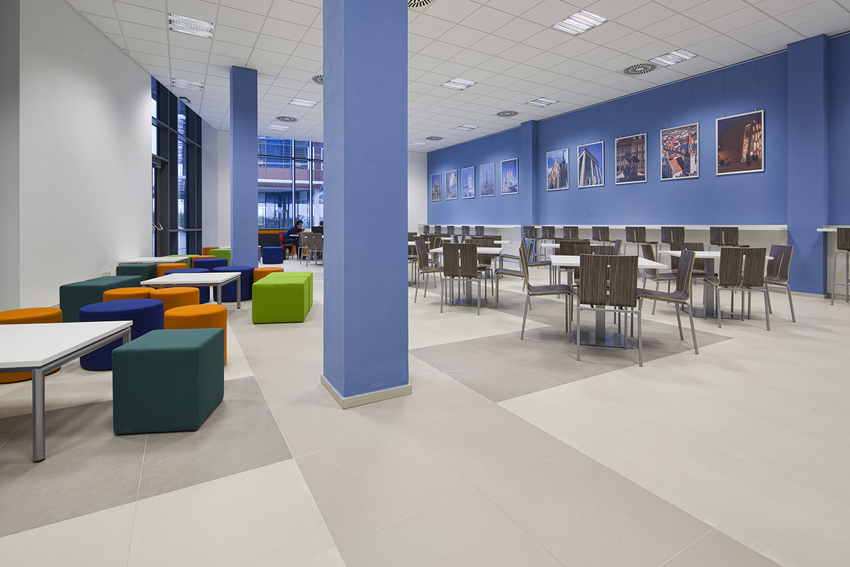 Že si s pokládkou nakonec obkladači na výbornou poradili, mohou už od září obdivovat nejen dvě stovky zaměstnanců objektu, ale také zdejší studenti. Inspirující prostředí plné barev, prostoru a dynamiky jistě podpoří jejich vědecké ambice.