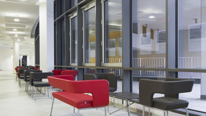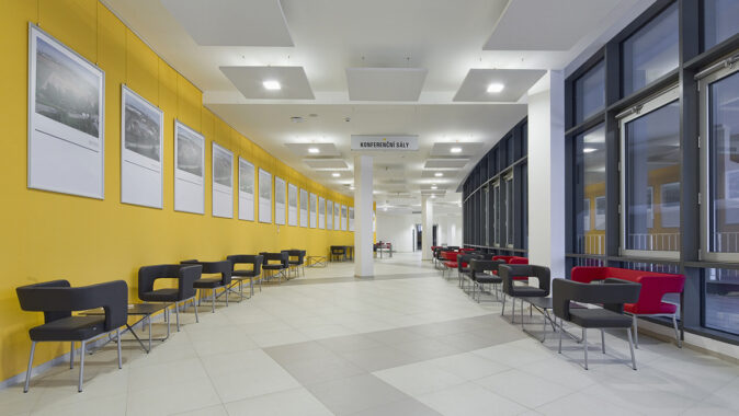 Moderní obloukové foyer objektu NTIS pokryly dlažby RAKO