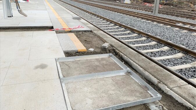 zařízení se na nástupiště vršovického nádraží použily vícedílné zadlažďovací