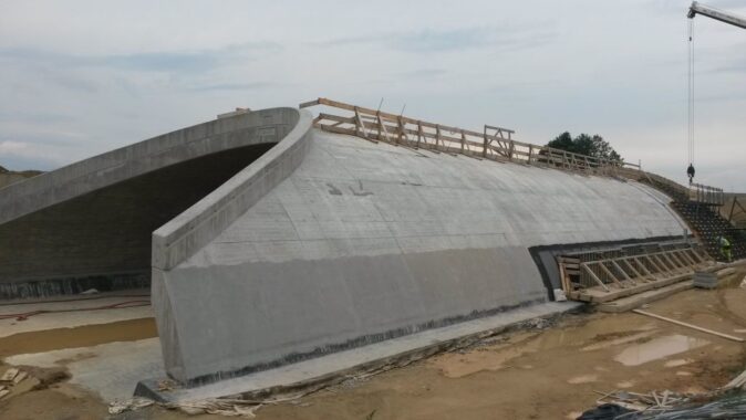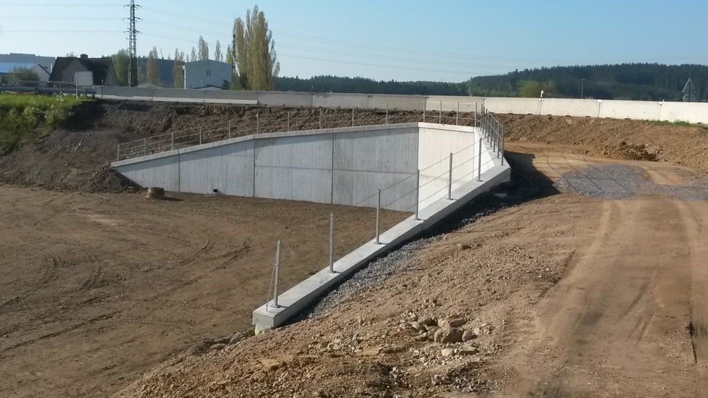 konstrukcí, např. velkou pohledovou opěrnou zeď u nově zbudované okružní